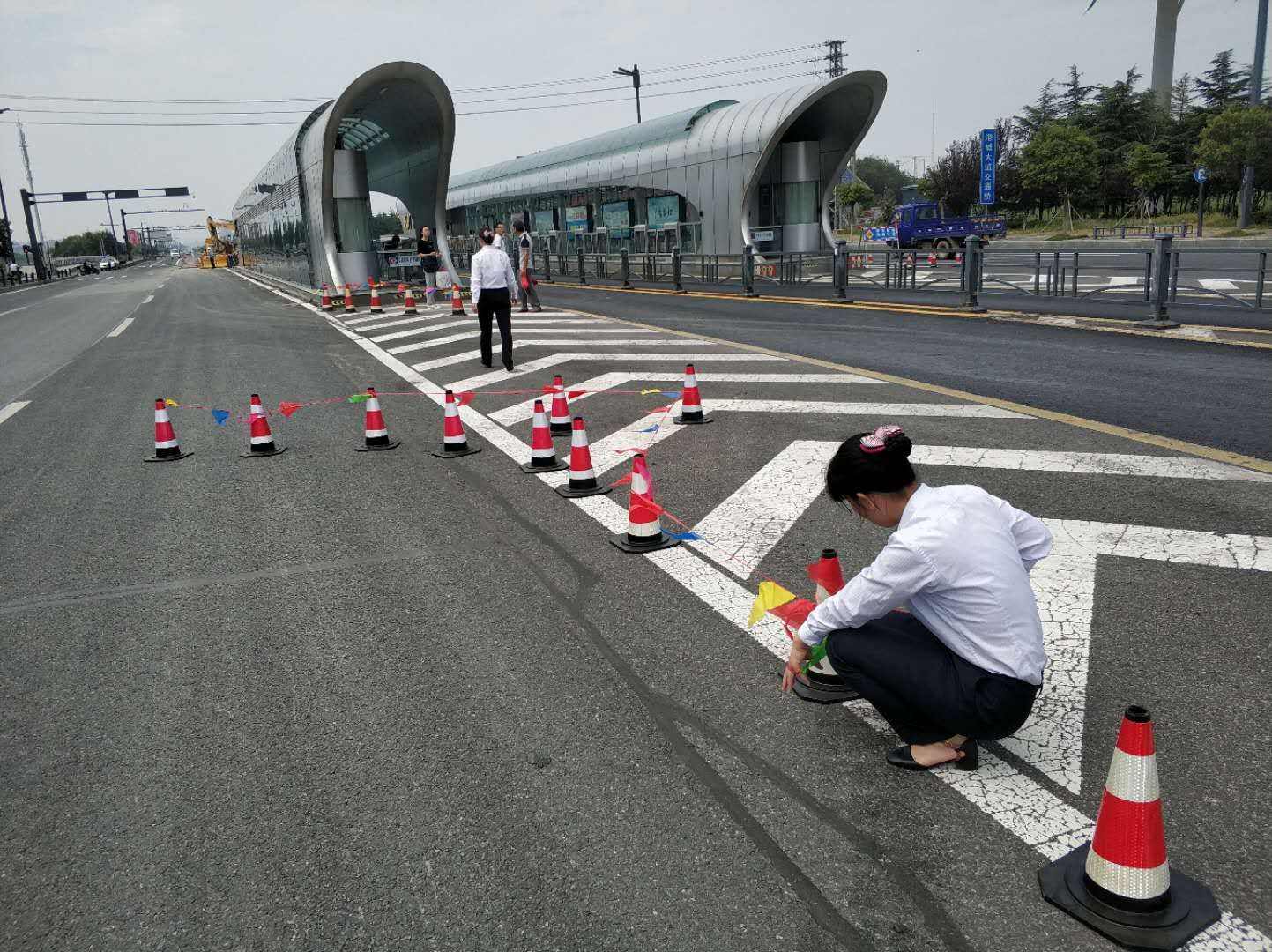 8月28日,公司安保科长曹永平带领相关人员到现场疏导秩序,由于此时正值早高峰,车流不息,曹永平发现有等待换乘的乘客处在不安全地段,他立即安排安全员纪祥华摆放警示标志,隔离出一块安全区域方便乘客安全等车。公司信息中心也及时发送信息,严格控制发车间隔,做到乘客在等车时不在站台久候,下车后人车分流,确保每位乘客的人身安全。