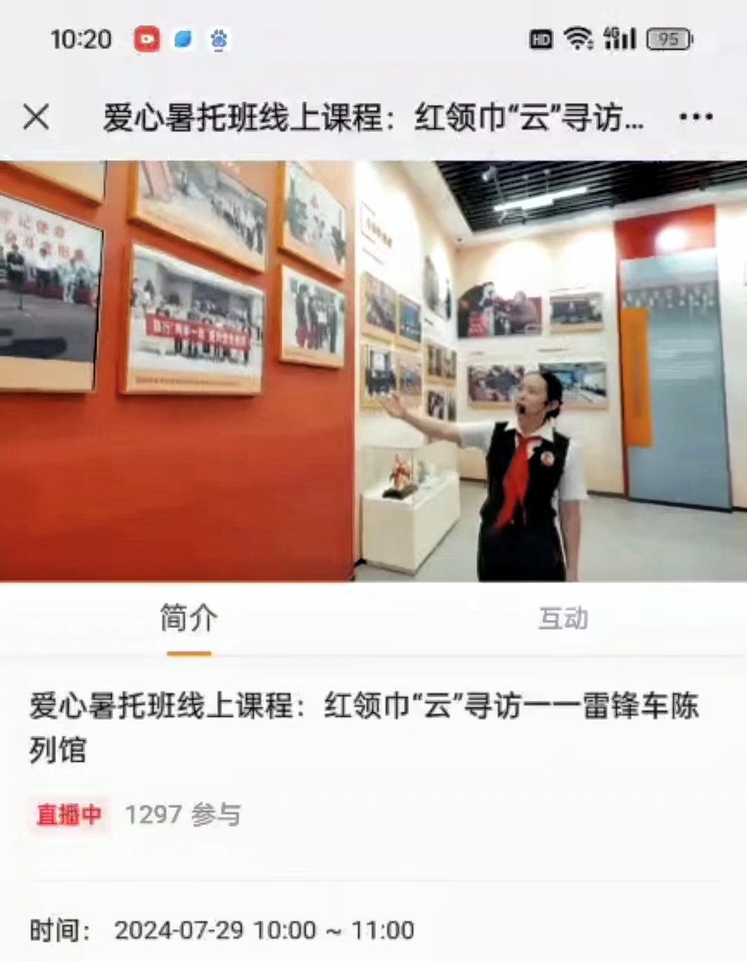 在“云”端讲解员的精彩引领下,孩子们仿佛身临其境,细致入微地游览了“雷锋车”事迹陈列馆的每一个角落。讲解员以其生动的语言,结合馆内丰富的图片、视频及实物资料,为孩子们详细讲述了“雷锋车”的光辉历程与那些感人至深的故事。不仅让孩子们深刻领略了“雷锋车”所承载的“宁愿自己千般苦,不让旅客一时难”的无私奉献精神,也引导孩子们向雷锋学习,向雷锋车学习,从小事做起,从身边做起,将爱心传递给更多需要帮助的人。