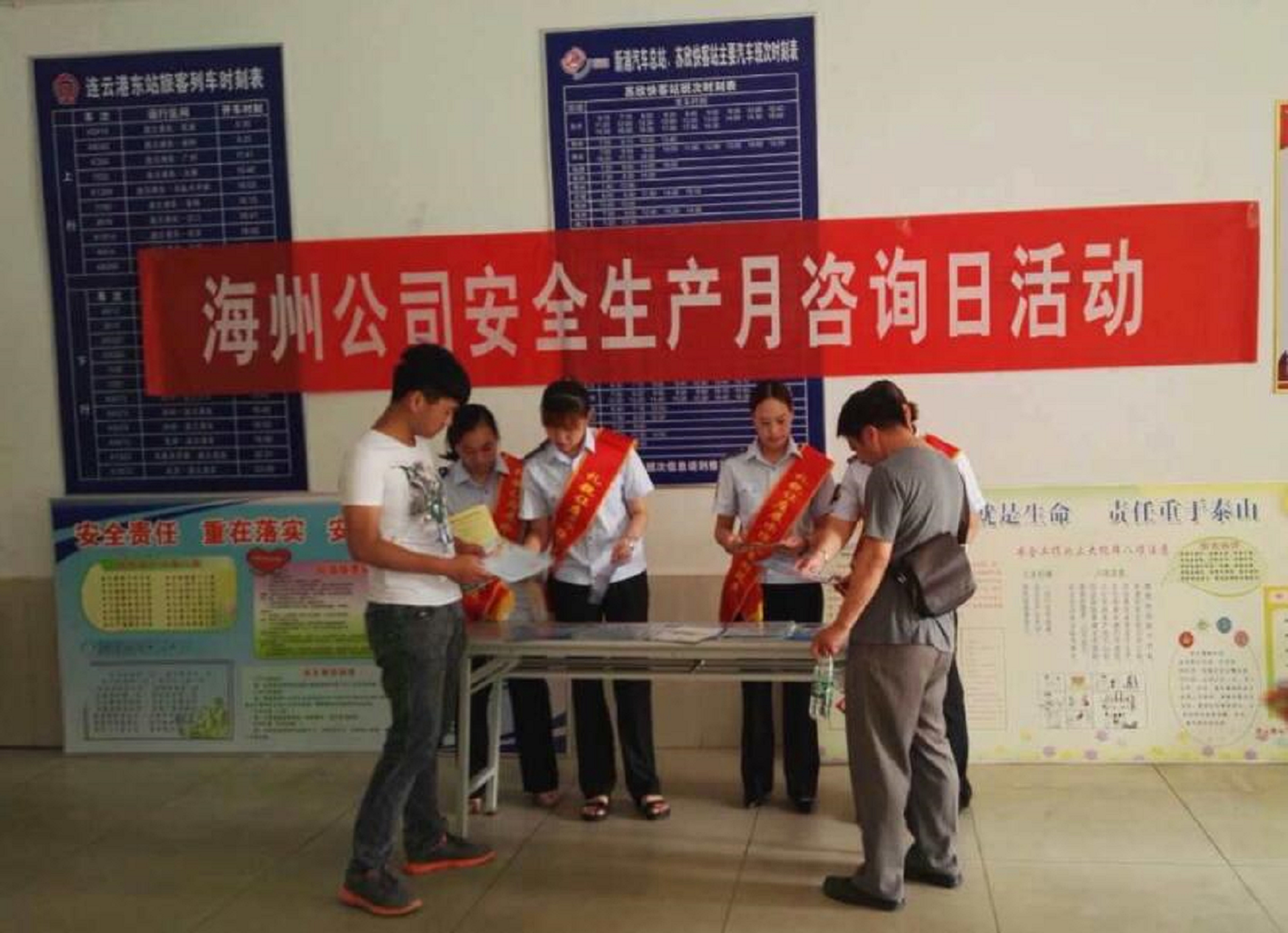 为了增强广大市民交通安全和文明出行意识,扎实推进“安全生产、优质服务”劳动竞赛活动,提升文明城市创建水平。6月16日,公交海州公司在海州客运站售票厅开展“安全生产月咨询日”活动。