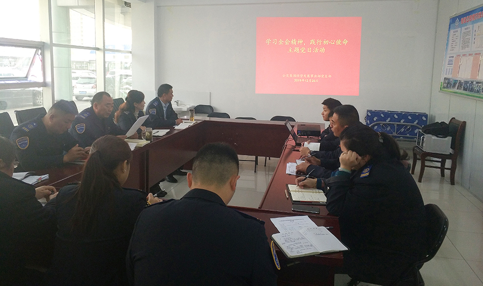 根据 “不忘初心、牢记使命”主题教育领导小组办公室【2019】19号通知文件要求,12月26日上午,公交集团经营发展事业部组织开展“学习全会精神,践行初心使命”主题党日活动。