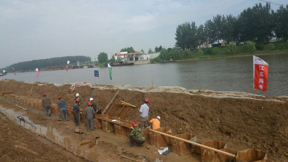 截止当前,由江苏海通航务分公司承建的刘山船闸下游引航道项目已完成拉森型钢板桩所有基础工程,即将进入上部结构施工阶段。