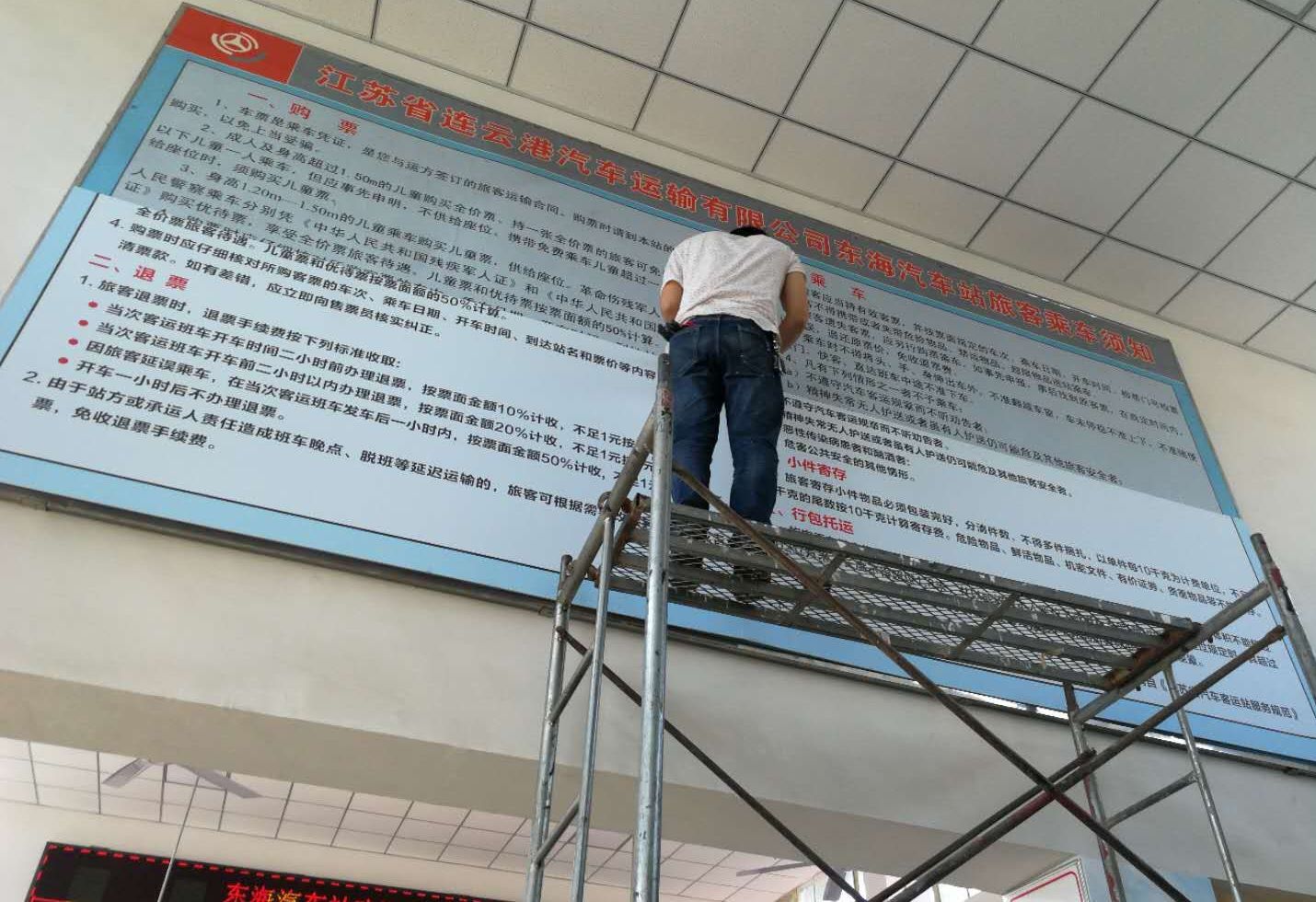 5月9日,东海公司认真落实前期市、县语委办用字用语规范督导组对分公司客运站场、候车大厅、售票大厅、办公楼、安检台的指示牌、宣传栏、电子屏幕标语用字用语和检票口工作人员的服务用语、用字规范检查中存在的薄弱环节进行认真的查漏补缺,同时对查出的问题及时整改,并将更正后的标牌、宣传栏等进行更换。
