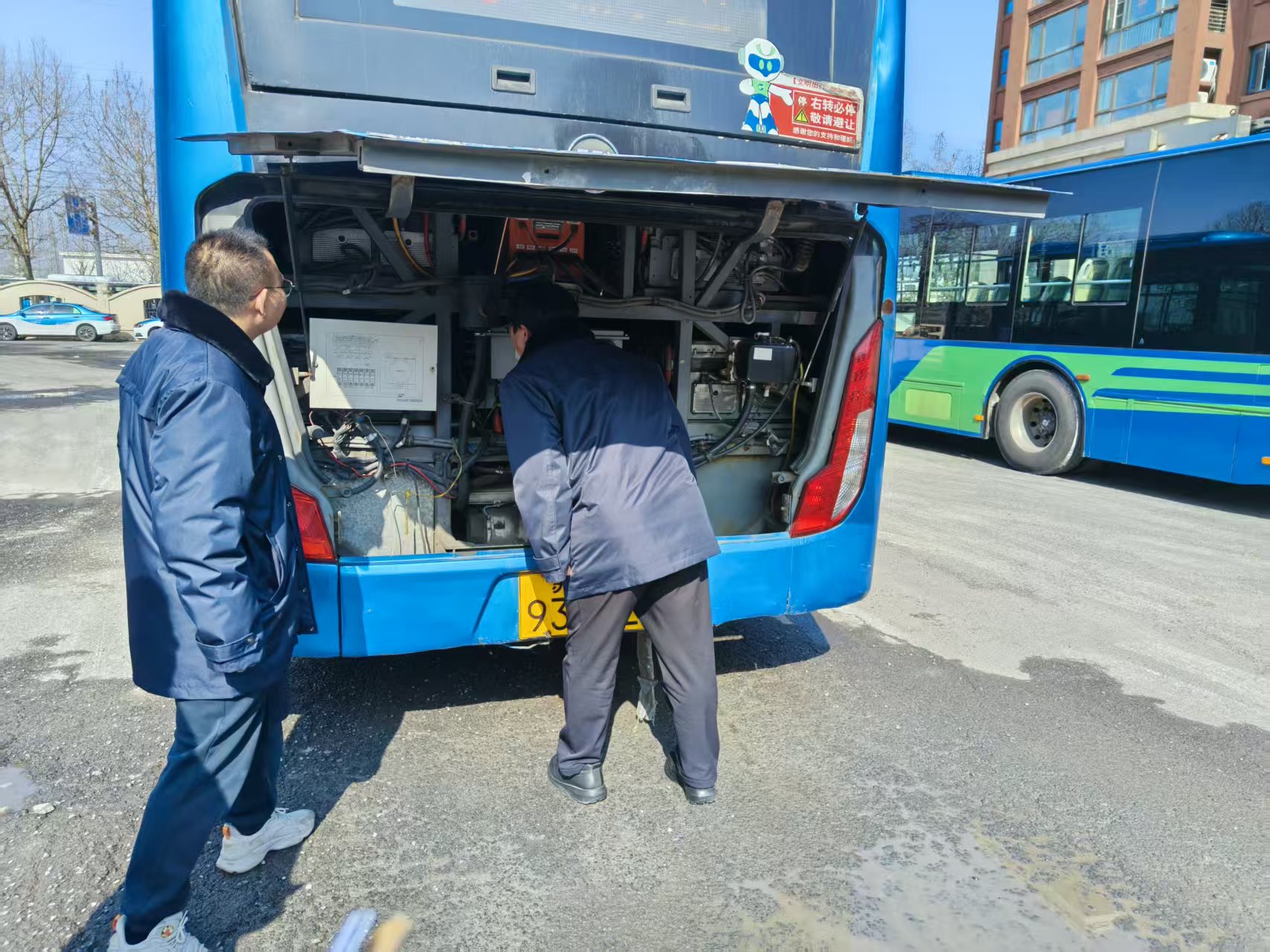 检查组一行直奔现场,重点检查运营车辆制动系统、转向系统、灯光设备、轮胎磨损等关键部件的运行状态,细致核验车载灭火器压力值、有效期,安全锤配备、固定情况,以及应急门开关灵敏度、应急标识清晰度等应急设施,杜绝车辆“带病上路”。同时,深入场站充电区、维修车间、驾驶员休息区,排查充电桩设备运行、线路铺设、漏电保护装置有效性等充电安全隐患,检查消防通道是否畅通、消防器材是否完好、监控设备是否正常运行,要求严格落实场站安全管理制度,细化日常巡检流程,及时清理安全隐患死角。