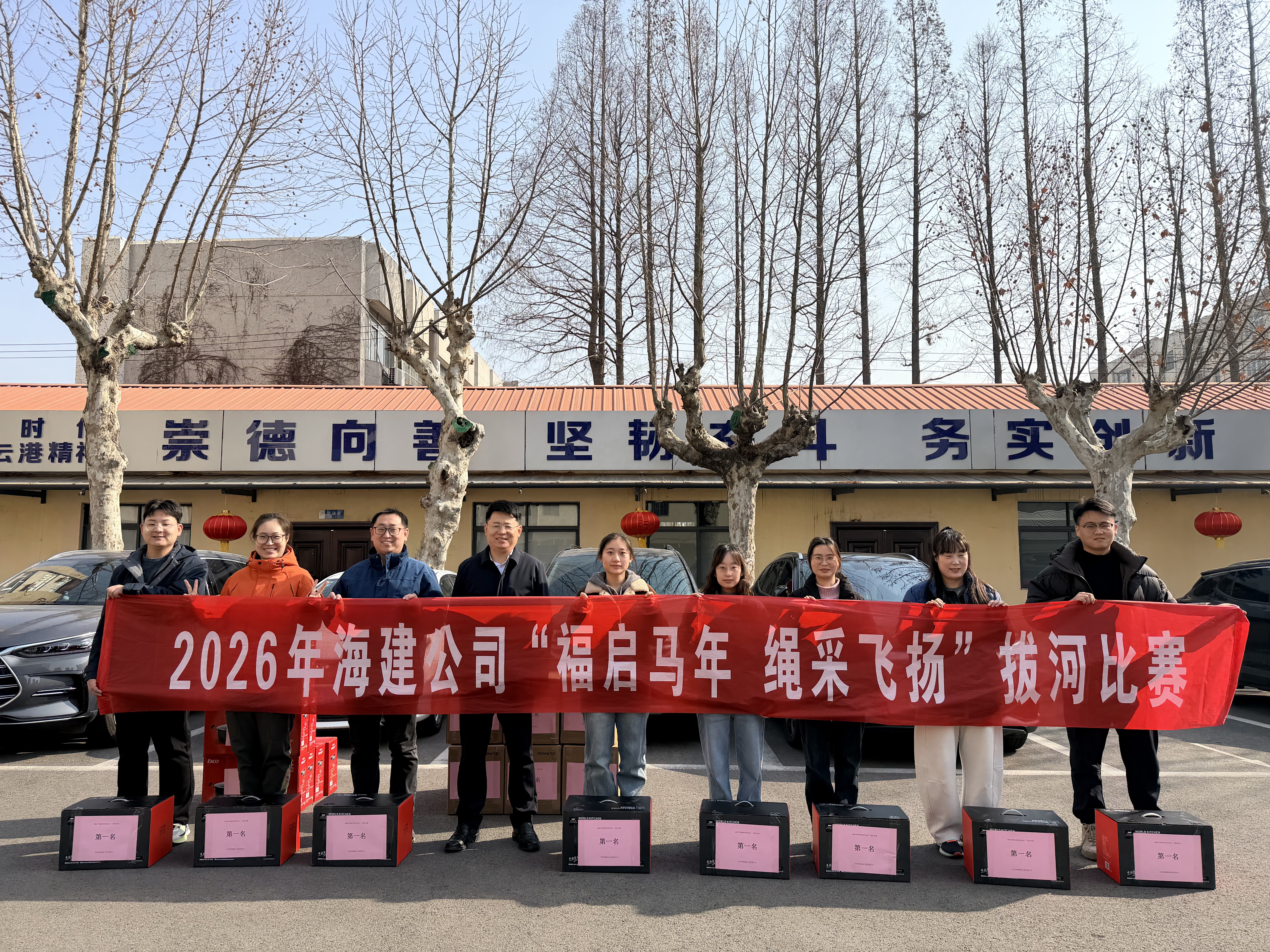 为迎接2026年春节,丰富职工文化生活,提升团队凝聚力,江苏海建公司工会于2月12日在公司院内组织开展了“迎新春”职工拔河比赛及“跃步新征程·同心开门红”趣味活动。机关全体职工踊跃参与,现场气氛热烈。