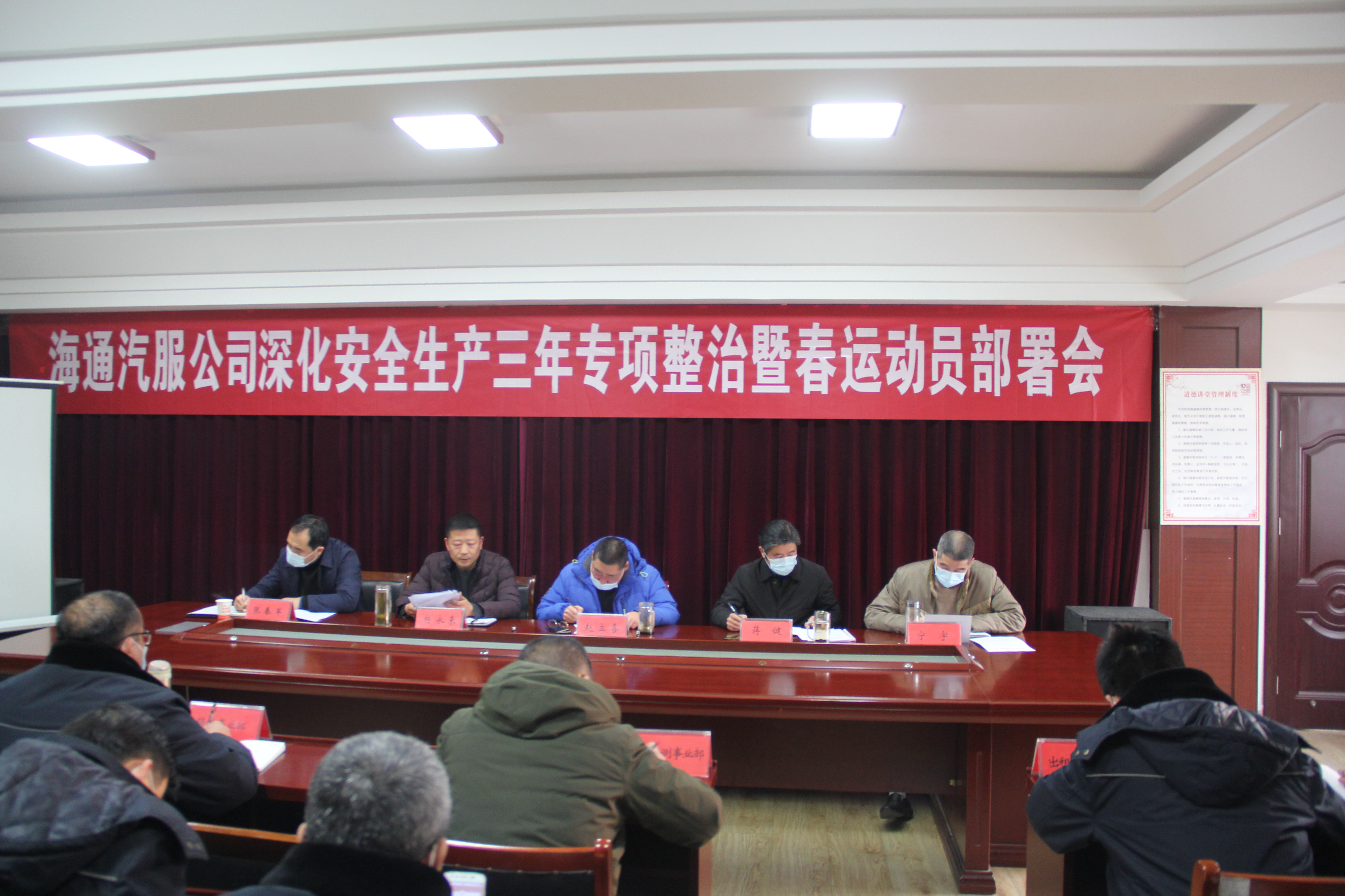 1月27日下午,汽服公司召开深化安全三年专项整治暨春运动员部署会议。公司领导班子成员、各处室负责人、各事业部领导班子及安管人员参加会议。会议由汽服公司副总经理张春军主持。