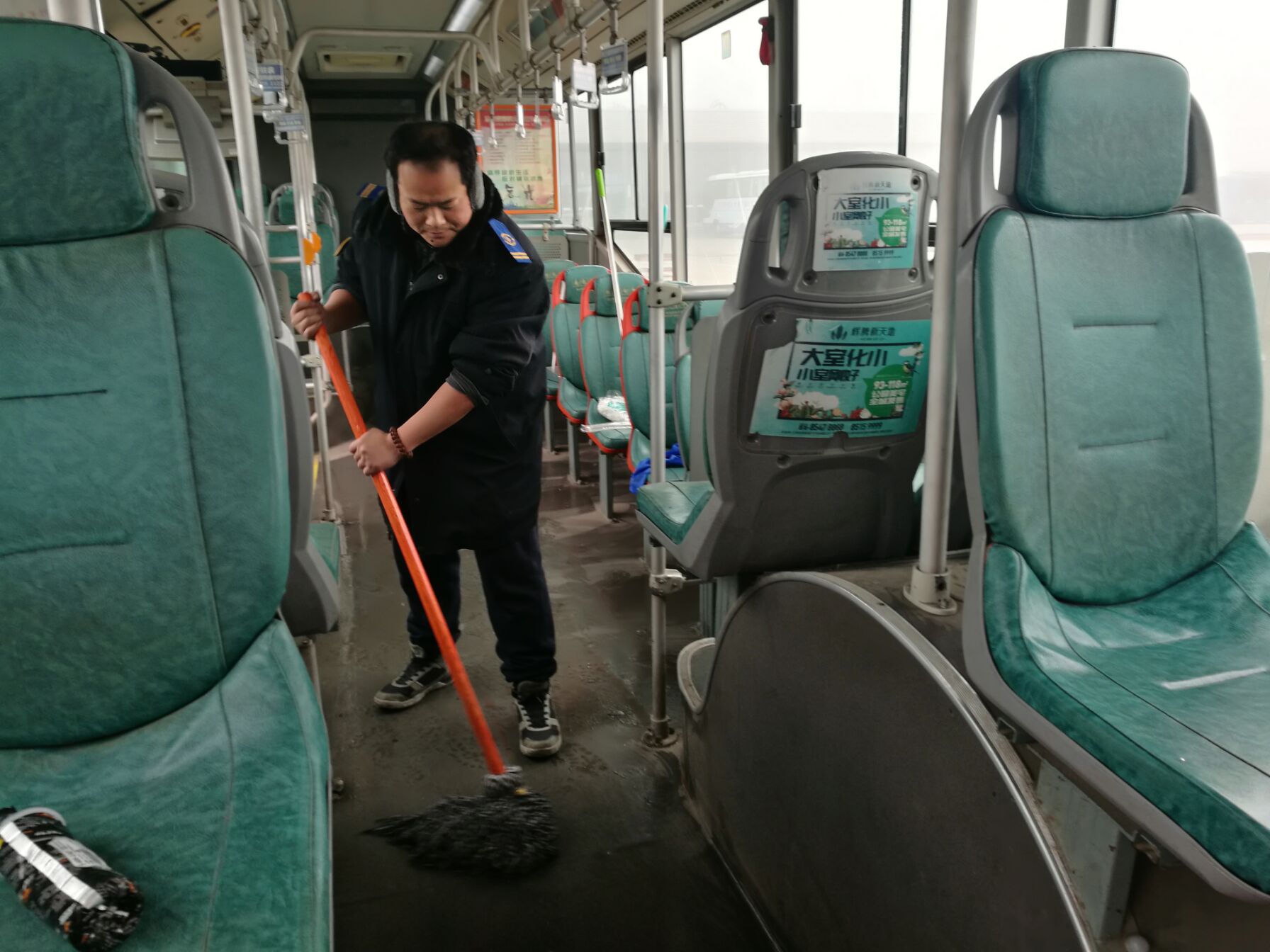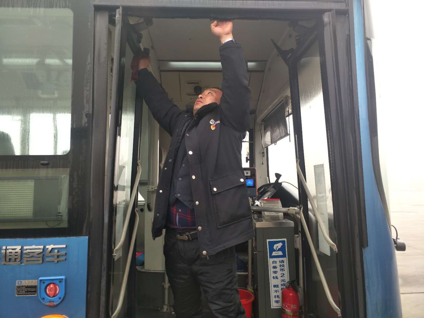 为了让这6台车早日上线运营,公交集团快速公交事业部东城分公司安机员李辉除了检修车辆的各项性能,还主动与智能维护员孙涛一起打扫车辆内外卫生。作为一名安机员和一名智能维护员,只要保证交接的车辆性能与设施符合运营要求,驾驶员就可以接车了,车辆的卫生应该都是接车的驾驶员打扫,与安机员、智能维护员毫无关系,室外气温接近0℃,他们的手冻得通红,可是,为了减轻接车驾驶员的工作负担,他们主动地将车辆的车窗、地板、拉手、座位、驾驶员的操作台、车门全部擦洗干净。