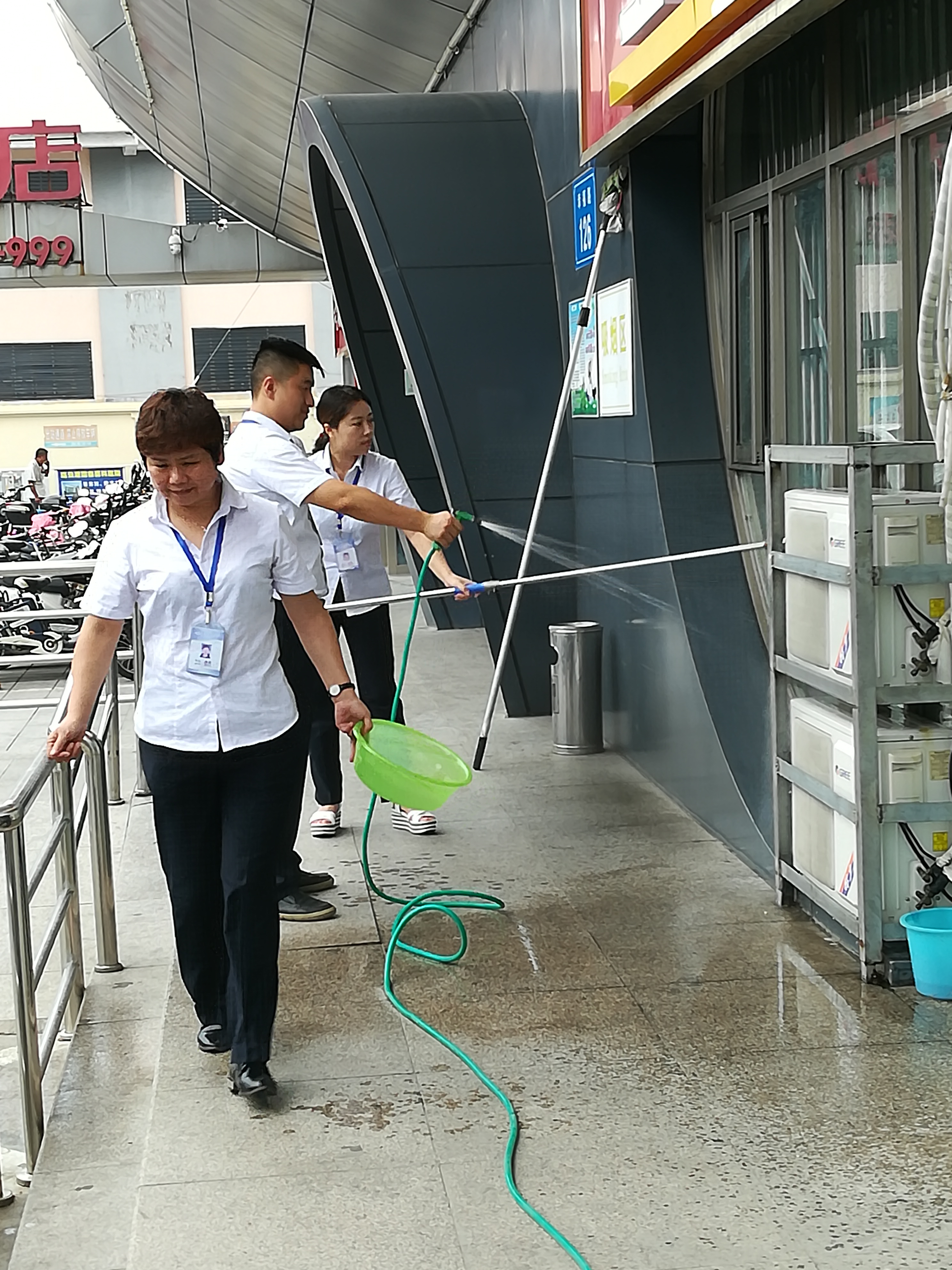 下午3点30分,大家拿着扫把、拖把、抹布、洒水枪等清洁工具,对站前广场、办公区域、空调外机夹缝里的垃圾进行认真清理、冲洗,对周边的小广告进行清除,不放过每个卫生死角。在打扫得过程中,督促经营商户对自己的责任区进行卫生打扫。经过半个多小时的清扫、捡拾,各处环境焕然一新,公司周边干净整洁,卫生死角一扫而空。