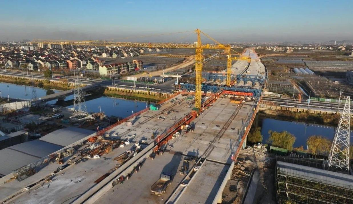 329国道上虞盖北至道墟段改建工程完成控制性节点建设——东进河大桥左幅顺利合龙。为江苏海建公司圆满完成329国道上虞盖北至道墟段改建工程第TJ01标段的建设任务奠定了坚实基础。