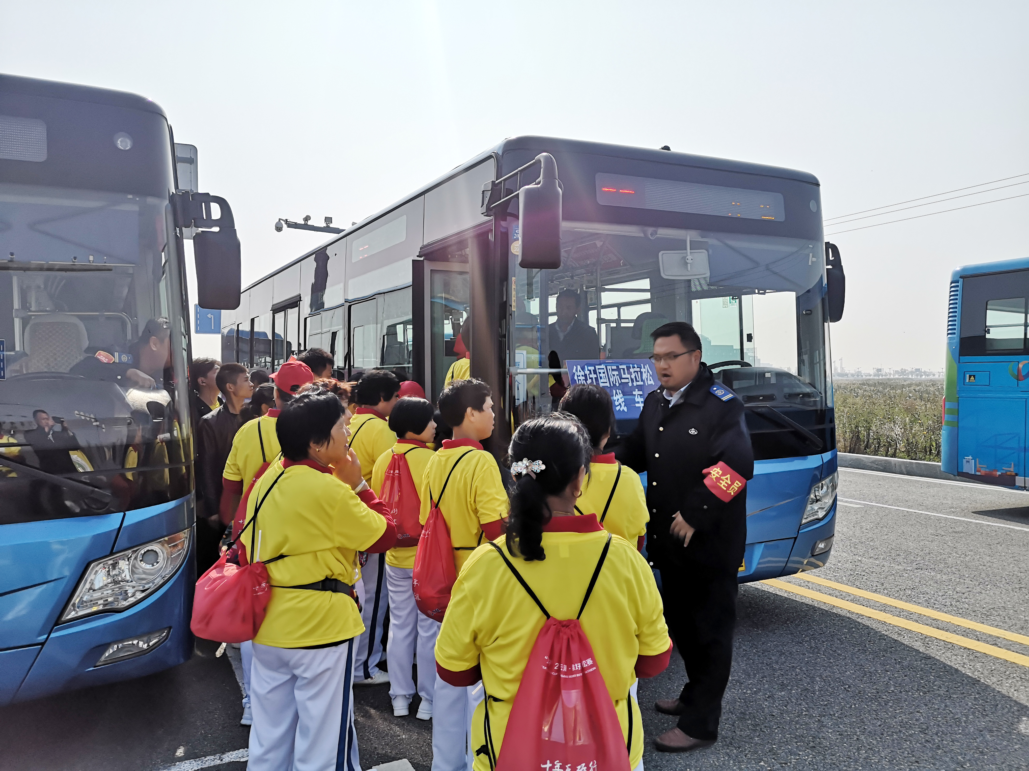 活动当日,公交集团50路、51路、50K路、56路4条徐新线路40辆公交车辆、72台座位版大巴车全部投入保障,所有车辆首班时间提前至早6点,采用流水发车的形式确保参赛运动员、医疗和应急保障人员准时到达比赛地点,同时组织30余名管理人员包车带队、路口疏导,确保乘车人员及时疏散。