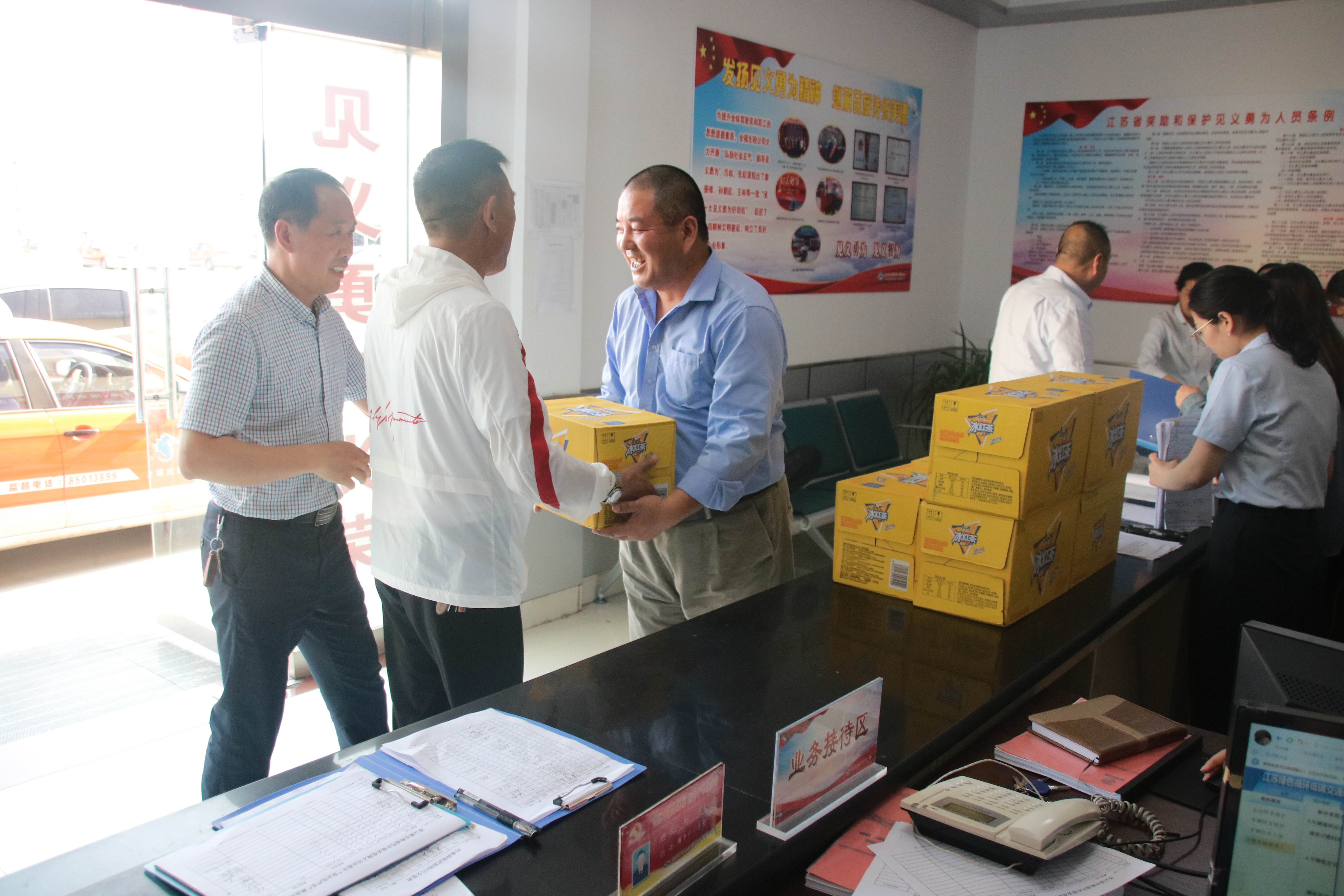 炎炎夏日,浓浓牵挂,夏日高温天气,运营在一线的广大出租车驾驶员非常辛苦,全福公司领导高度重视出租车驾驶员防暑降温工作,始终把关爱广大出租车驾驶员放在首位,6月18日至19日,全福公司管理人员给公司所属的589台车驾驶员每人发放一箱防暑降温茶,并叮嘱驾驶员们天气炎热,要养成良好的生活卫生习惯,按时进餐、多饮水、合理安排运营时间、注意身体健康多休息,杜绝疲劳驾驶,确保乘客及自身的安全。