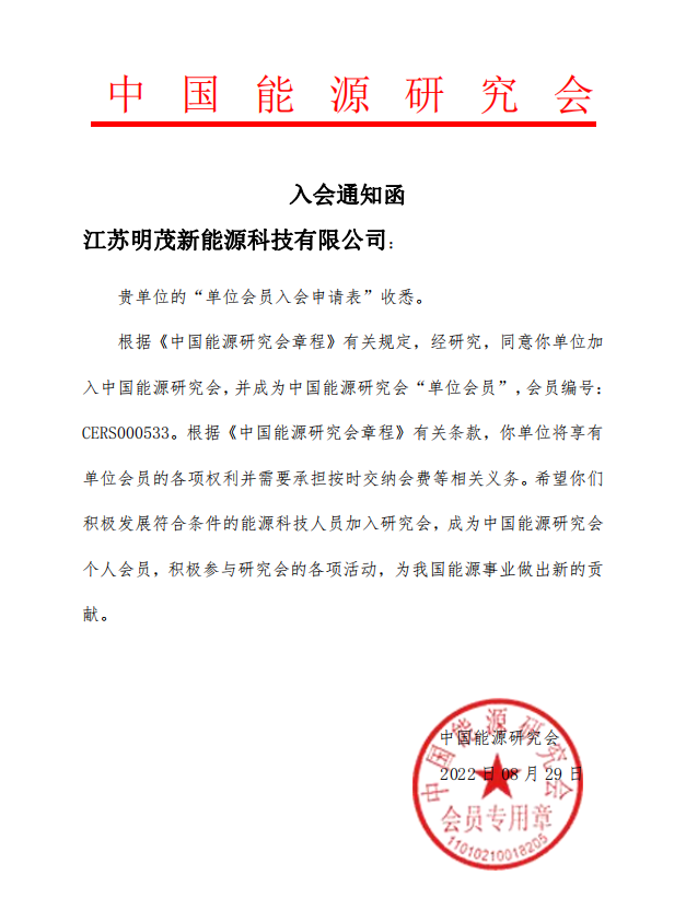明茂公司将以加入中国能源研究会为契机,积极参与各会员单位研讨交流,提升公司的业务与管理水平,实现资源共享、扩大公司业务市场,及时掌握新能源行业的动态及相关政策。对构建明茂公司综合能源事业有着积极作用。