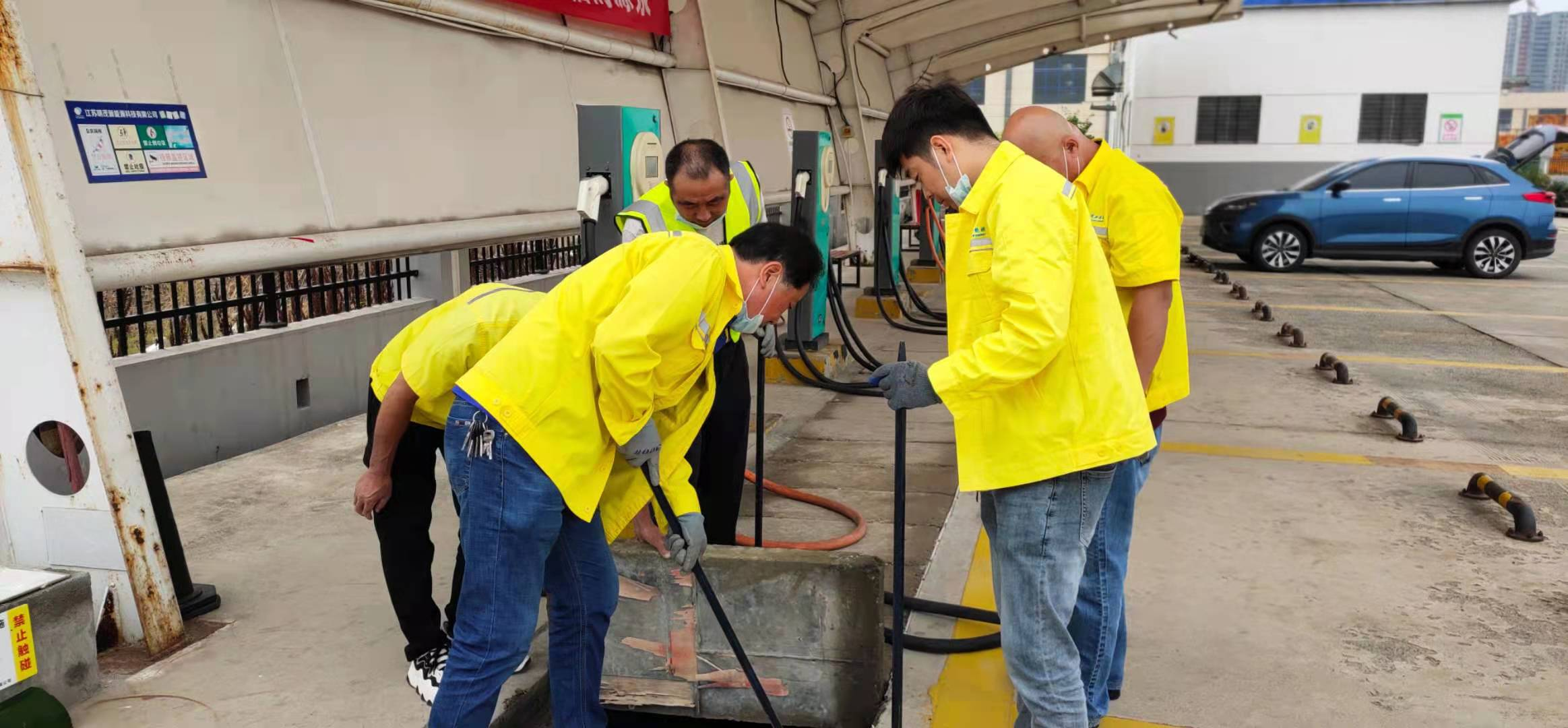 本次检查包含充电设备、电气设施、场地排水以及安全通道等多个方面。经检查,充电站中充电桩、电缆及相关设备防水新能良好且未发现设备存在受潮或浸水情况,所有电气设备运行正常。此外,班组成员还检查了场站的排水系统、安全通道,均未发现异常。
