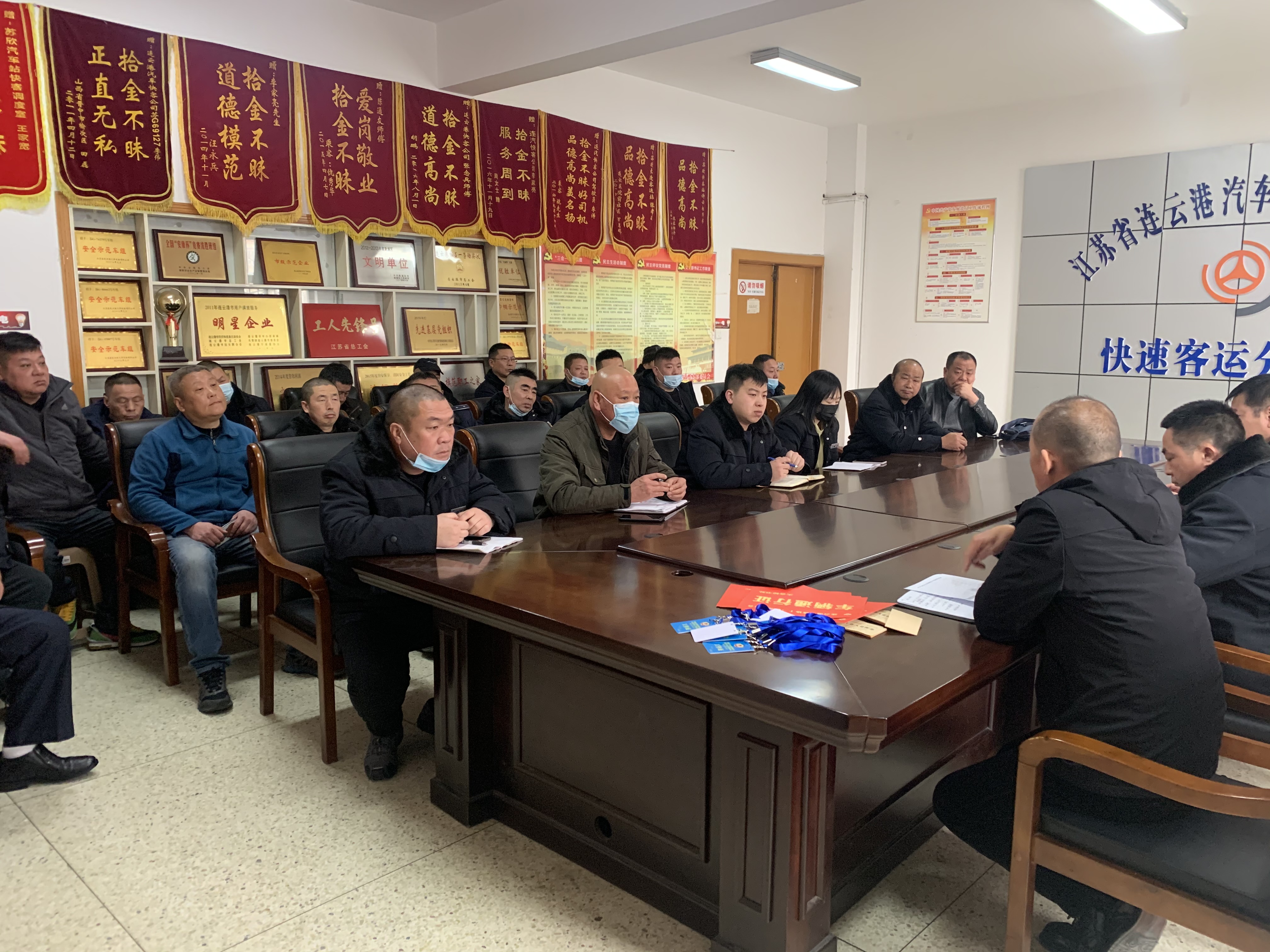 会上,董红波对参与两会保障任务的人员提出几点要求:一是所有参与两会期间接送保障任务的人员要提高认识,以高度的政治责任感和良好的精神状态全身心地投入到此次接送任务中,确保人大代表和政协委员出行安全畅通舒适;二是所有参与接送保障任务的人员要服从带队人员管理,不私自外出宾馆、会议地点,晚间不得饮酒,同时必须严格遵守会议纪律和保密制度;三是参与运输任务的人员统一着装,穿戴整齐,佩戴好胸牌,规范服务,文明用语,同时做好参会人员车门引导工作,充分展示“连汽快客”风采;四是对所有参会车辆全面排查,确保两会用车期间不发生因车辆自身问题造成车辆不能正常运行等情况;五是在两会期间,做好车辆清洁消毒工作,每趟次按照要求到规定地点对车辆进行一次消毒;六是针对目前疫情防控工作实际,对参与“两会”期间运力保障的人员统一安排到医院进行核酸检测,确保运力保障人员身体健康;七是根据疫情防控需要,每辆车配备体温枪、免洗凝胶及口罩等防疫物资;八是对参与运力保障驾驶员进行文明用语、着装以及安全行车再培训,不断提升运输服务水平。