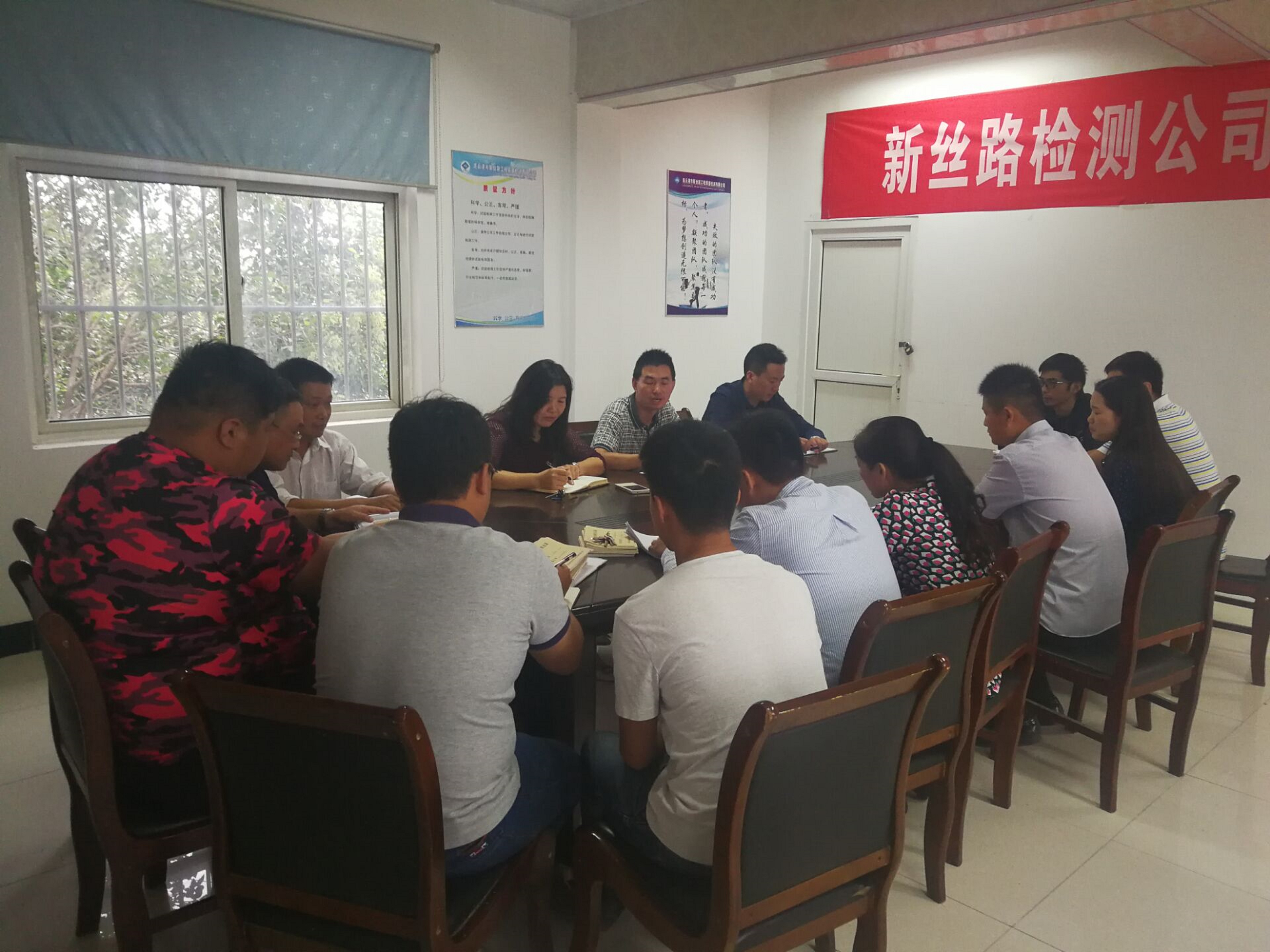 9月30日下午,由江苏海通公司人力资源部部长周辉以及新丝路检测公司林建明、唐雪雁组成的绩效考核领导小组对新丝路检测公司的试验检测人员、试验工进行了2017年第二季度考核。