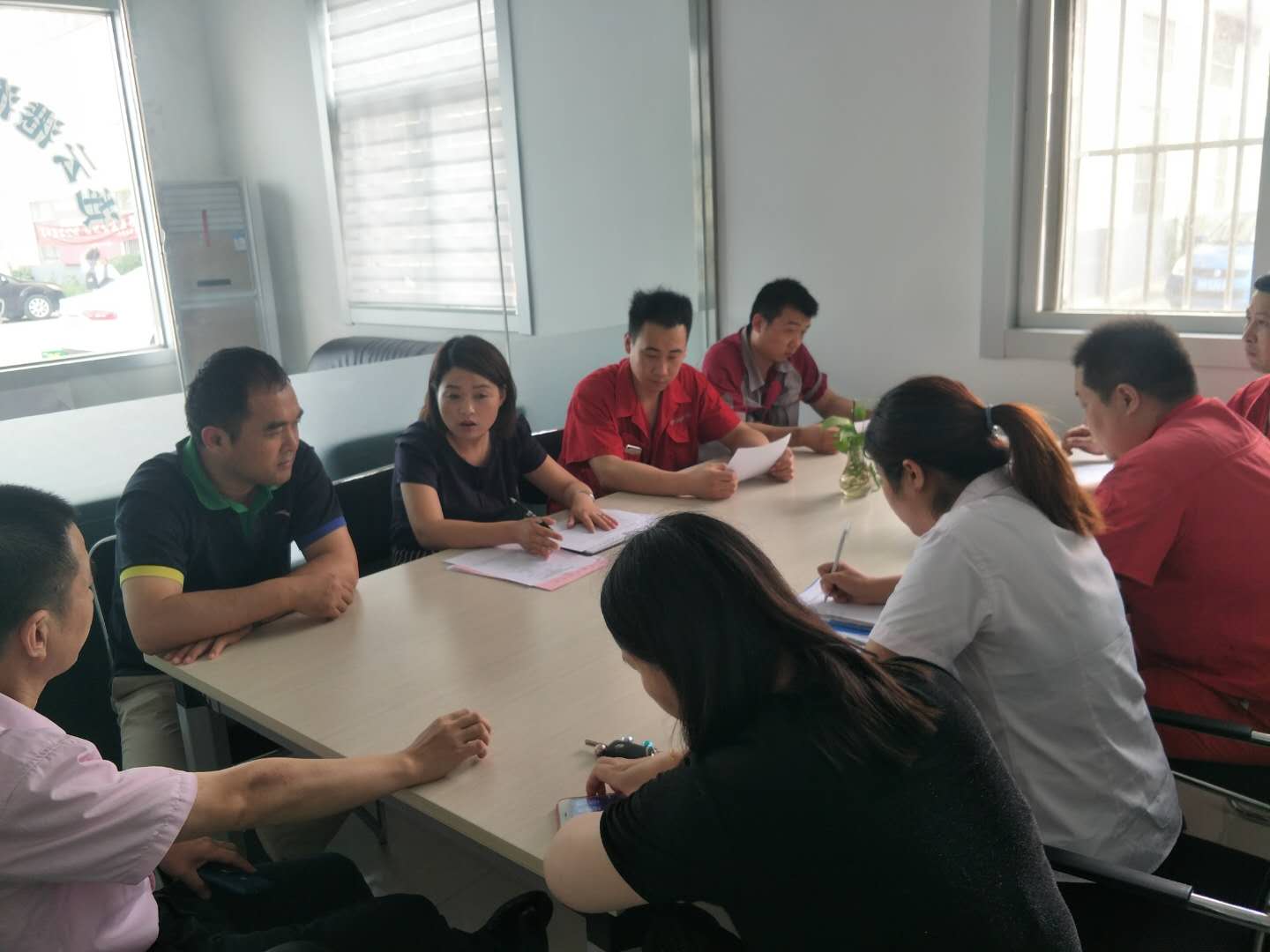 租赁公司经理李霞按照交通控股集团公务车改革要求及各单位车辆交车时间计划表,将租赁公司员工分为四个工作小组,并对每个小组的岗位职责及成员分工进行明确。她要求各小组之间要加强交流,在认真完成本组工作的同时,主动了解其他小组的需求,及时给与协助,积极互相配合工作,在大家共同努力下,圆满完成此次集团内部公务车车改工作。