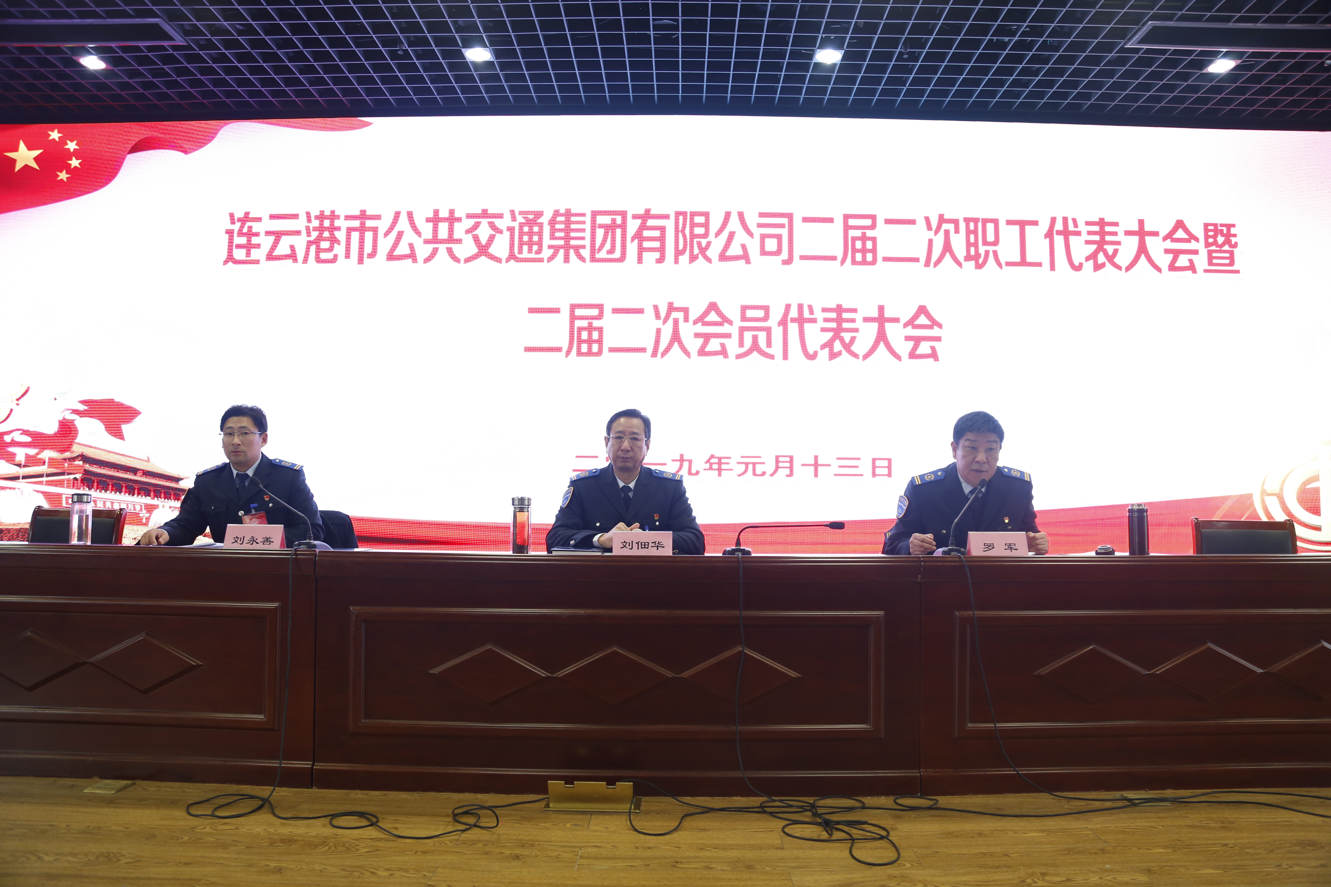 2019年1月13日,连云港市公共交通集团有限公司二届二次职工代表大会暨二届二次会员代表大会隆重召开,来自公交集团各事业部的111名正式代表和37名特邀、列席代表参加了会议,会议由公交集团党委委员、副总经理罗军主持,市交通控股集团党委书记、董事长刘永能,党委委员、工会主席王中永应邀出席会议。