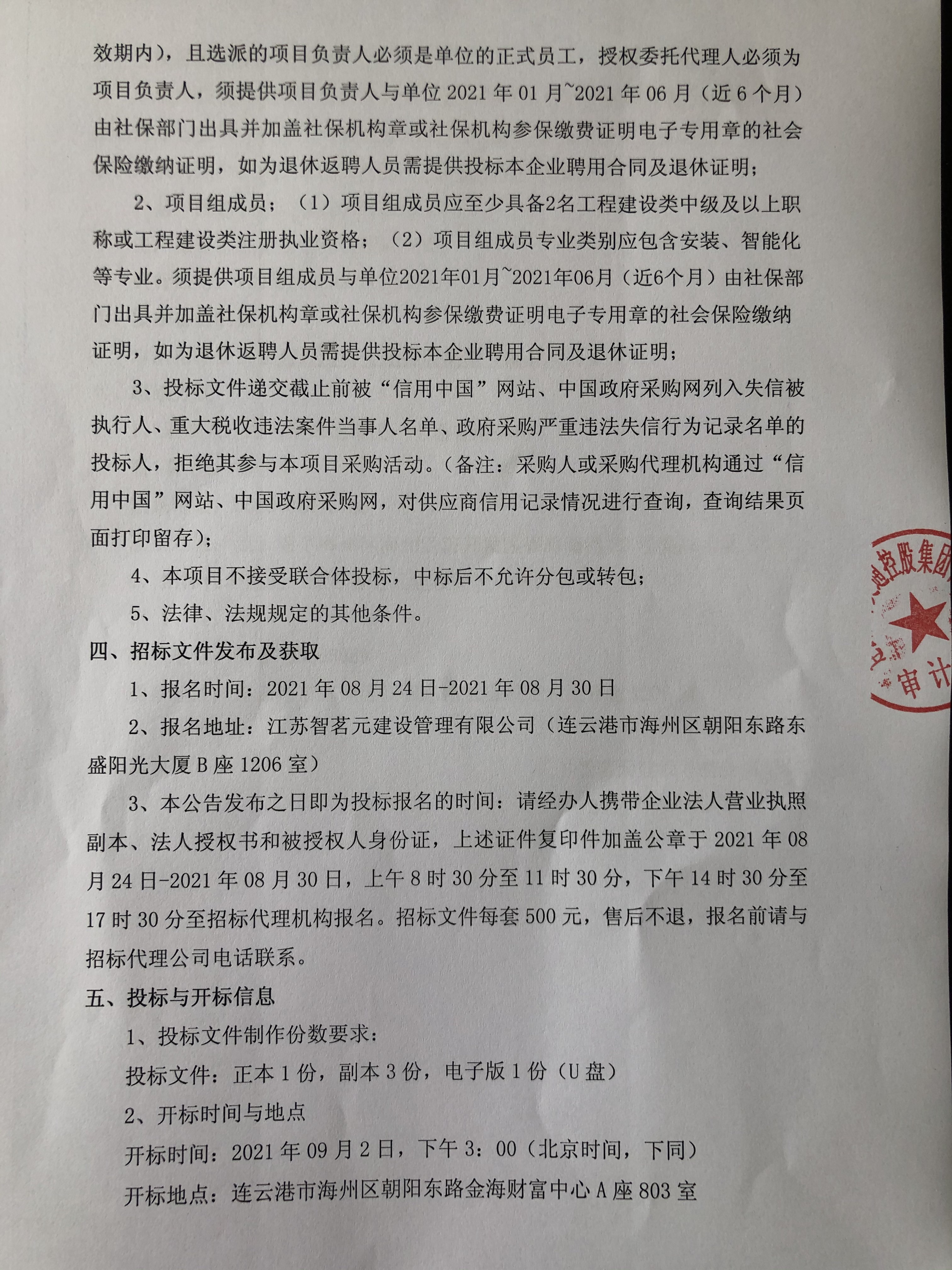 开标地点:连云港市海州区朝阳东路金海财富中心A座803室