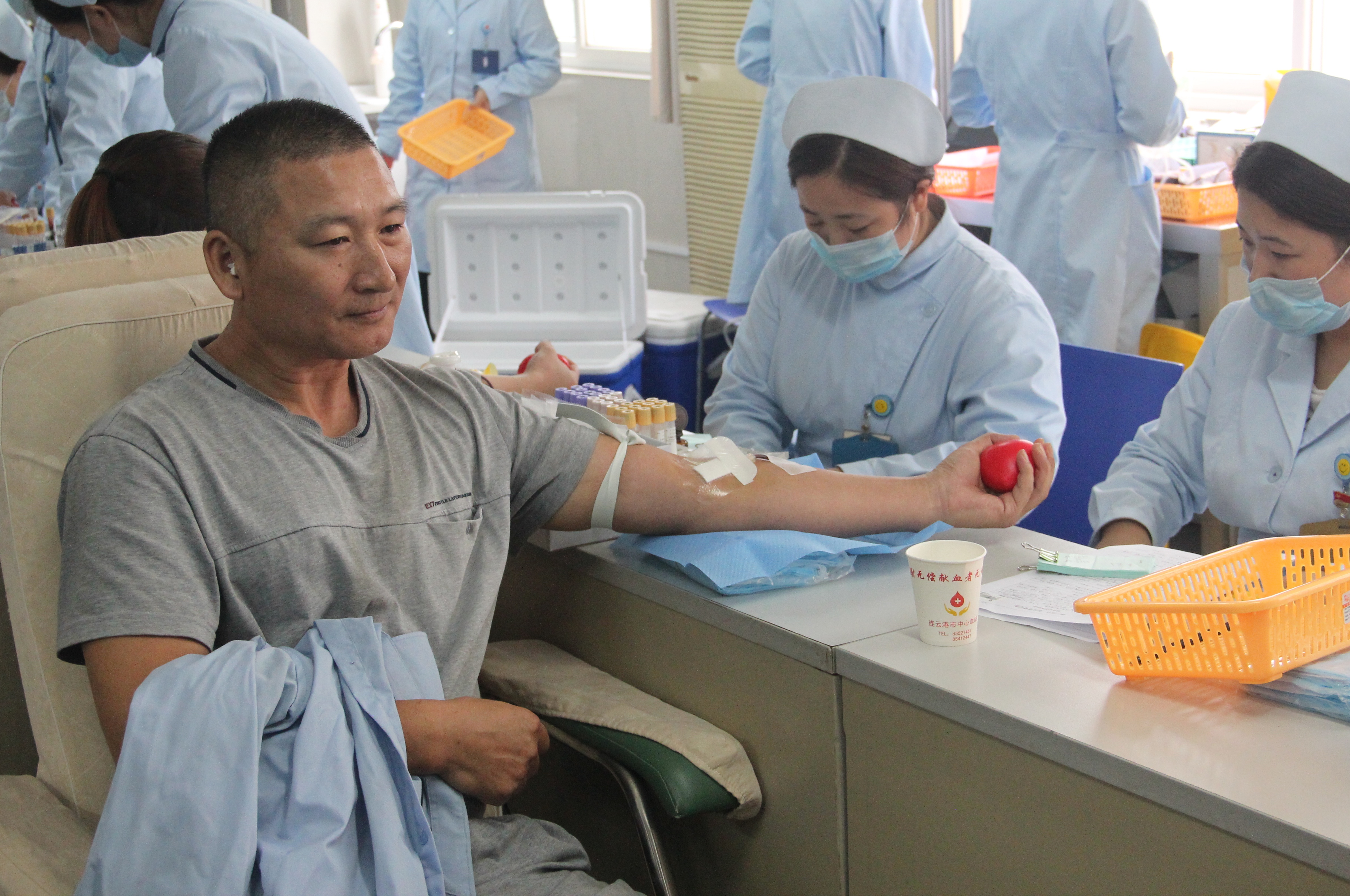 中心血站一楼大厅人头攒动,参加献血的人员个个精神饱满、情绪高昂,大家依次填写《无偿献血登记表》,在血压测量、血液化验等项目检查合格后,继续来到二楼献血区献血。此次义务献血队伍中,有的已经连续10次参加义务献血,有的则是第一次参加献血。职工李昕芮再次献出1u血小板,相当于800毫升血液。