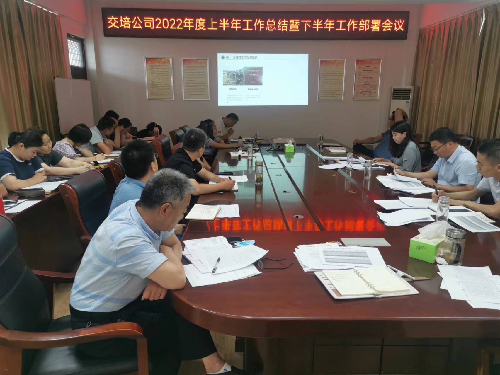 2022年7月4日,交培公司召开7月份月度安全、党建、生产经营工作例会暨上半年生产经营总结会,公司党委副书记、副总经理李霞(主持工作),纪委书记、工会主席陈志文、副总经理徐同龙、张华出席会议,公司中层以上干部参加会议,会议由徐同龙主持。会议听取了各单位、部门6月份安全、党建、生产经营情况及7月份工作计划,各单位、部门还汇报了上半年生产经营情况及下半年工作计划,分管领导结合分管工作进行了点评和要求。