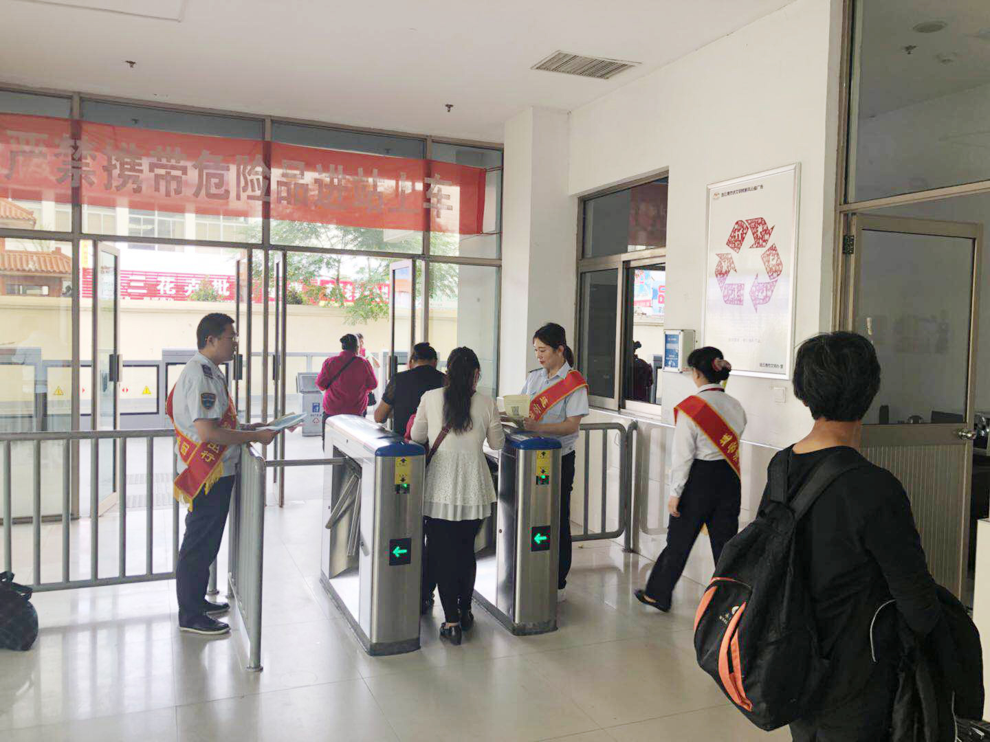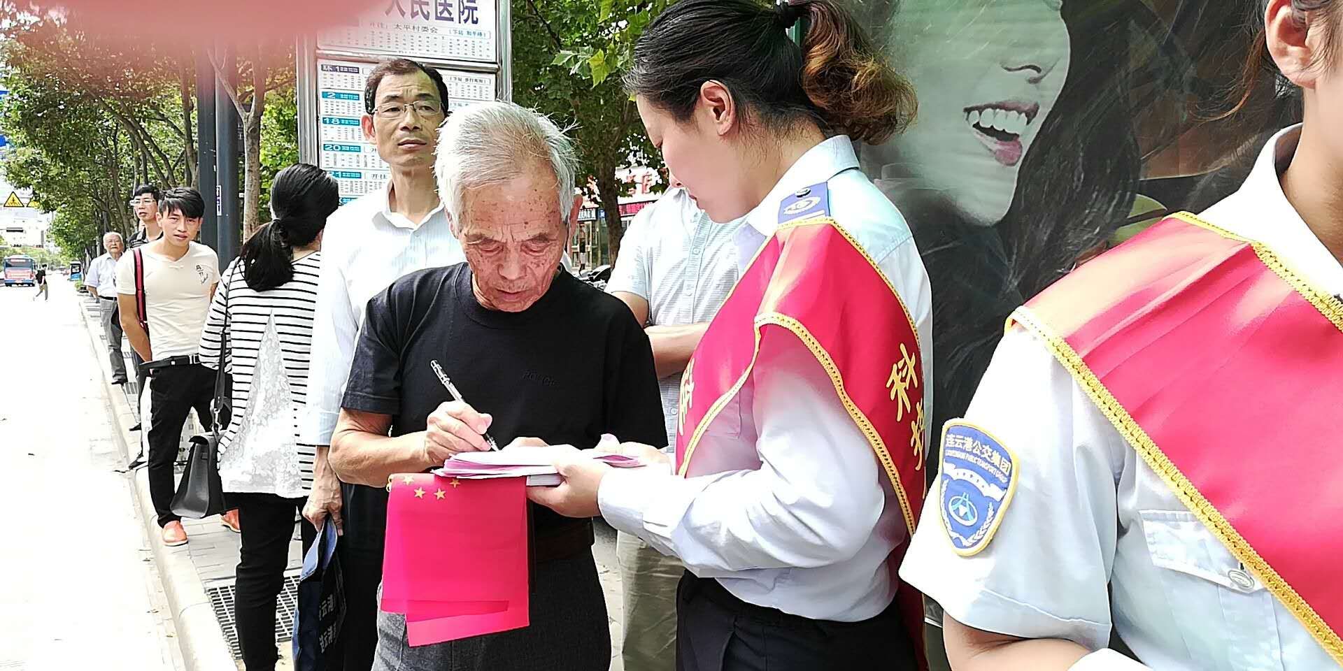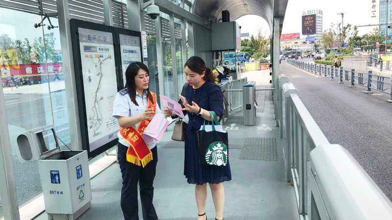 根据2018年公交出行宣传周活动安排,9月18日上午,公交集团组织开展了关爱残疾人无障碍乘车暨公交站点在排队文明出行活动,开展公交车辆斑马线礼让行人活动,加强监督考核,利用公交车载运营系统,及时提醒乘客礼让残疾人乘车。在公交站点在排队文明出行活动中,公司利用海州客运站、在海一方公园、市民广场、龙河广场4处BRT站台以及嘉瑞宝广场、购物中心、第一人民医院、苏宁广场、海州批发市场、步行东街、龙河广场、振兴大厦等站8处常规公交站台,安排48名志愿者统一服装、佩戴绶带,现场发放2018年公交出行宣传周倡议书1000余份、乘客满意度调查表800余份。