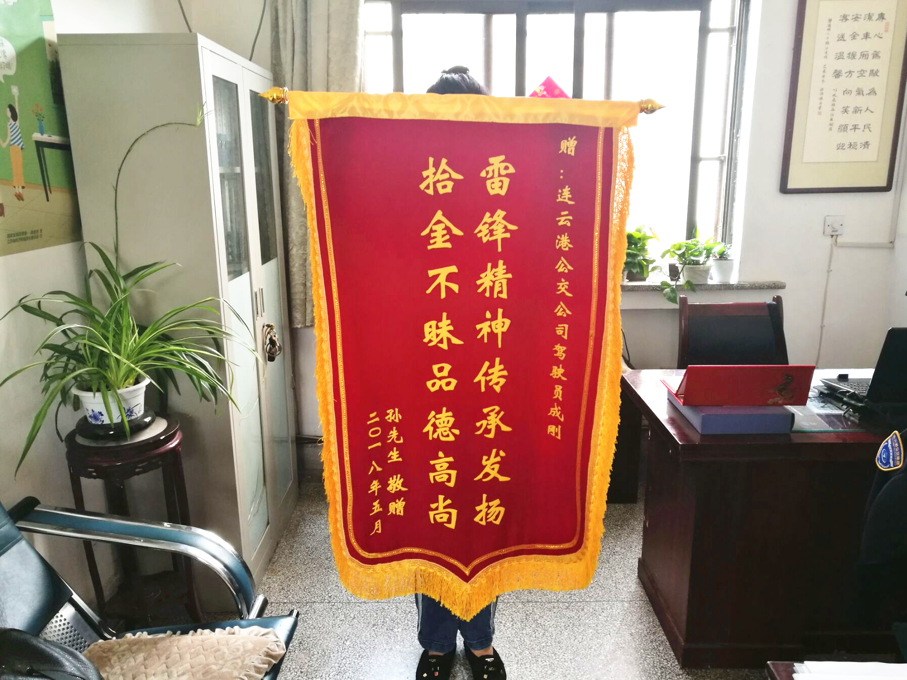 近日,公交集团海通公交公司20路驾驶员成刚师傅收到了市民孙先生送来的一面锦旗,锦旗上“雷锋精神传承发扬,拾金不昧品德高尚”这十六个字在阳光的映衬下熠熠生辉。