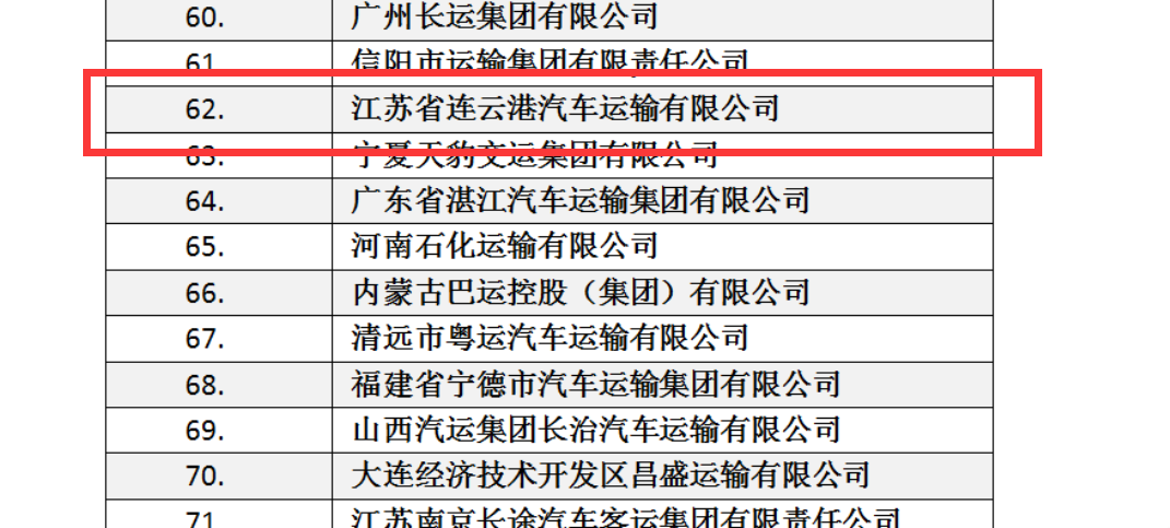 日前,由中国道路运输协会组织的2021年度中国道路运输百强诚信企业创建活动”圆满结束,江苏省连云港汽车运输有限公司榜上有名,入选“中国道路运输百强诚信企业(2021年)”名单。