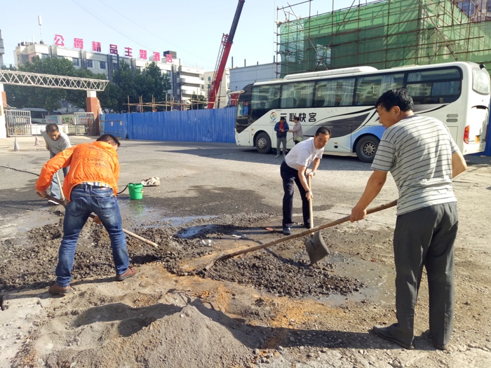 连汽旅游公司院内以停放大型客车为主,由于工作原因频繁出入,反复碾压致使院内路面凹凸不平,坑洼积水。6月6日,经理林佩全带领职工拿起工具,挥锹挖土,混合水泥黄沙,平整地面,职工们干劲十足。经过一个上午的辛勤劳动,院内环境焕然一新,实现了“车停有序、宣传规范、地面清洁、绿化优美”的新面貌。