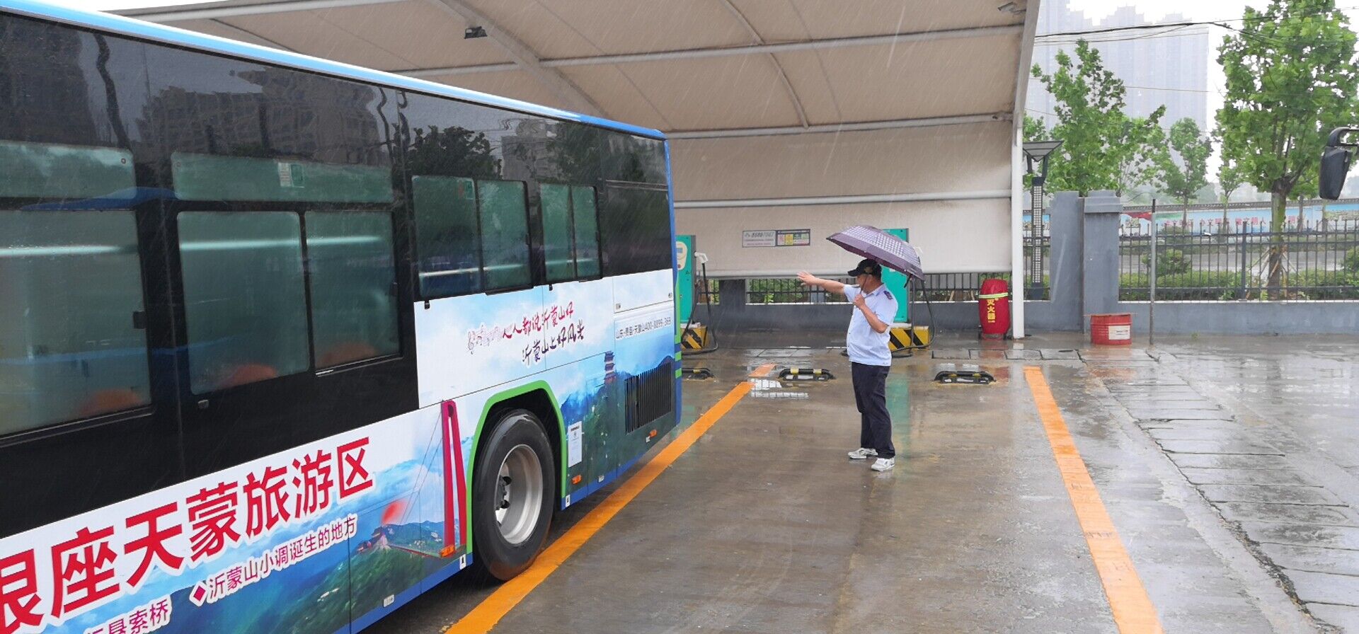 暴雨来袭,公交集团公交事业一部各级管理人员迅速到达指定岗位,清晨5:20之前,全体安管人员第一时间到达场站,对首班驾驶员进行安全交代,要求暴雨期间严格执行“电车涉水安全使用规范”,提醒驾驶员注意危险路段行车安全,服从指挥,并结合积水地点周边路况灵活指挥车辆运行。首班车发出后,管理人员又迅速赶赴各易积水路段、易堵路段及充电场站对驾驶员安全运营、转场充电进行现场指挥调度,与智能调度中心保持紧密联系,随时通报积水状况和公交车辆线路调整绕行情况。