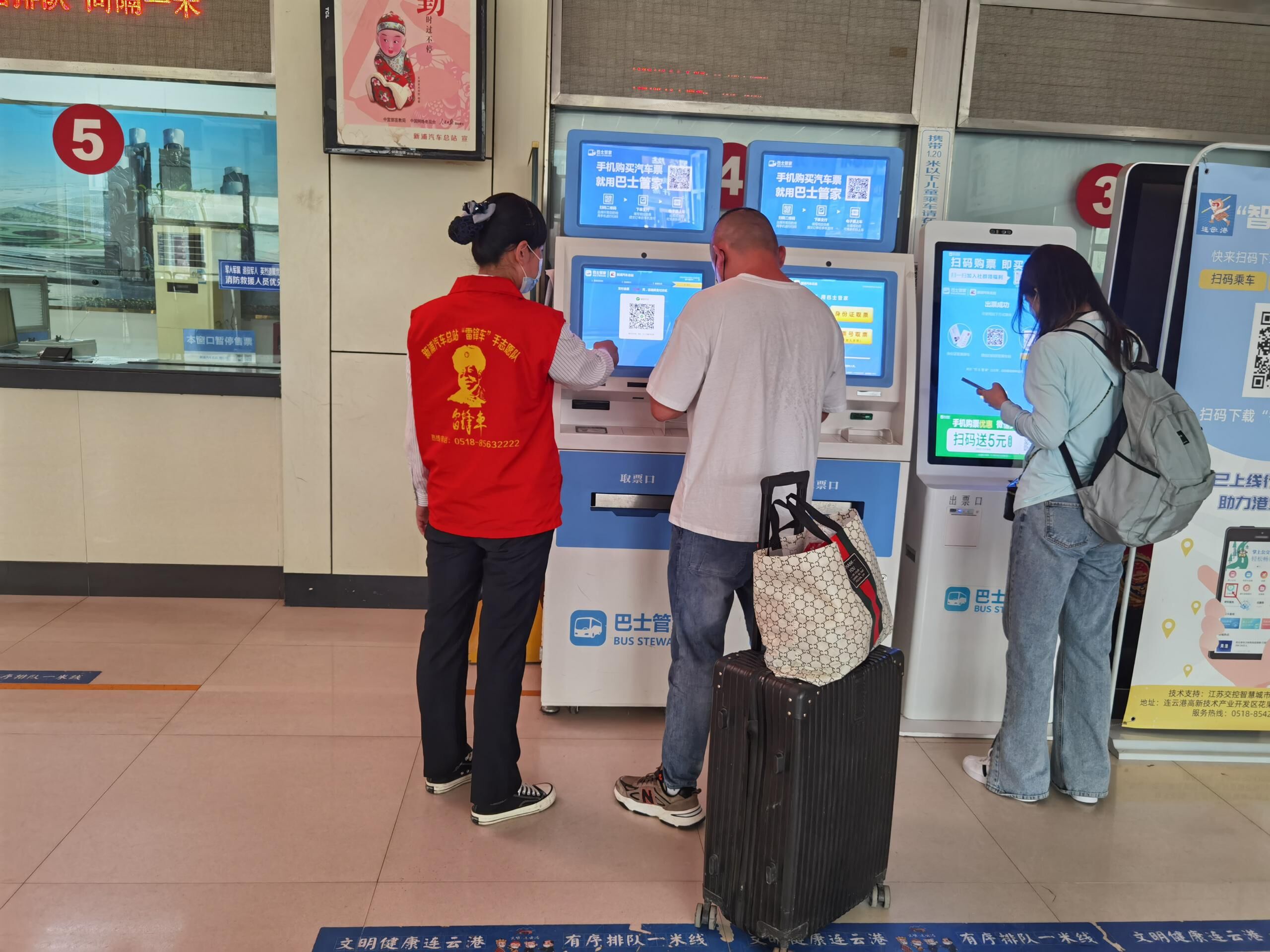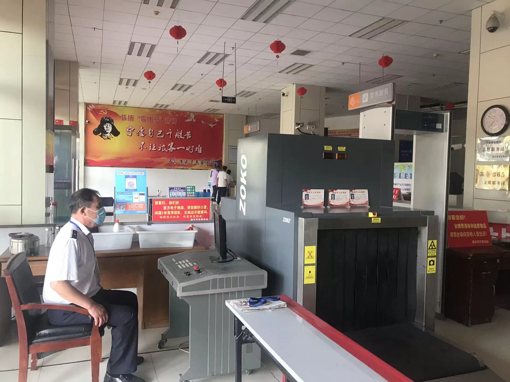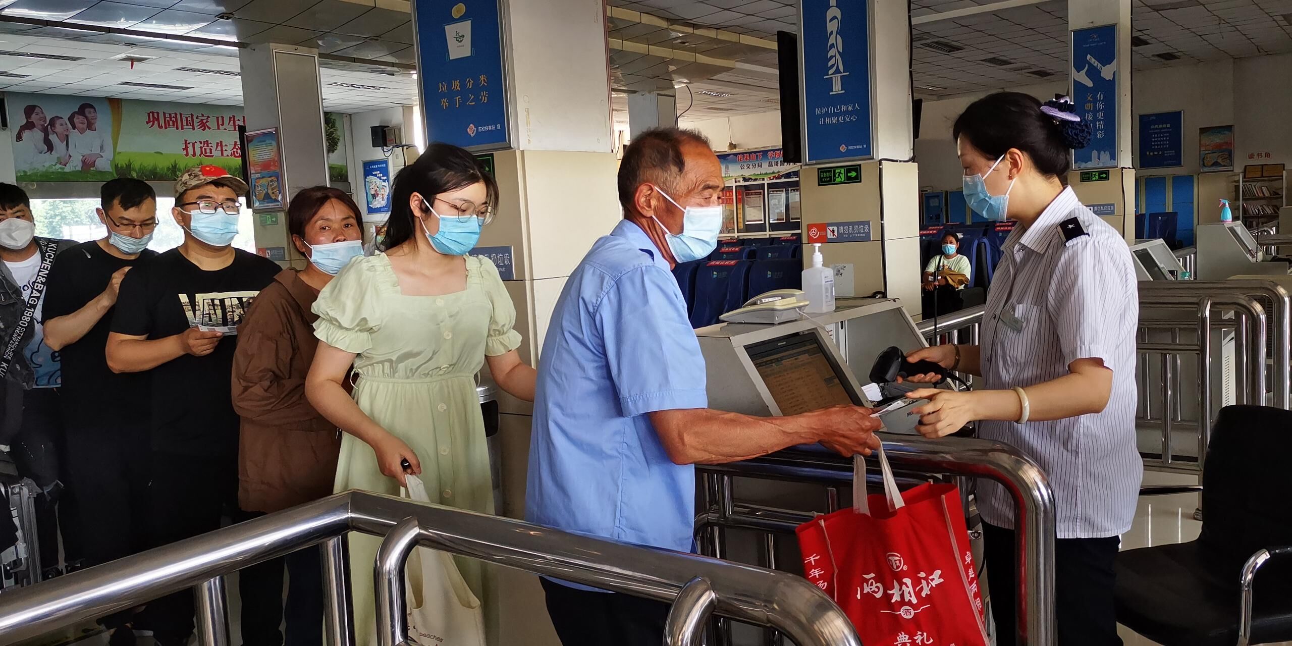 在各客运站进站大厅,汽车公司现场工作人员认真做好疫情防控工作,从旅客进站的那一刻起,扫码、测体温、安检,每一个环节都不能有丝毫马虎,提醒旅客戴好口罩。车站安全工作人员认真开展安全巡查,确保消防系统及相关设备的正常运行,确保安全生产稳定有序。安检人员严格执行“三不进站、六不出站”规定,做到逢包必检,逢疑必查,坚决杜绝不查、漏查、错查现象,确保将危险源查在站外、堵在车下,保障旅客出行安全;出站检查人员认真核对车辆实载人数、检查车辆安全设施配备以及旅客安全带佩戴等情况,严把车辆出站最后一道关。