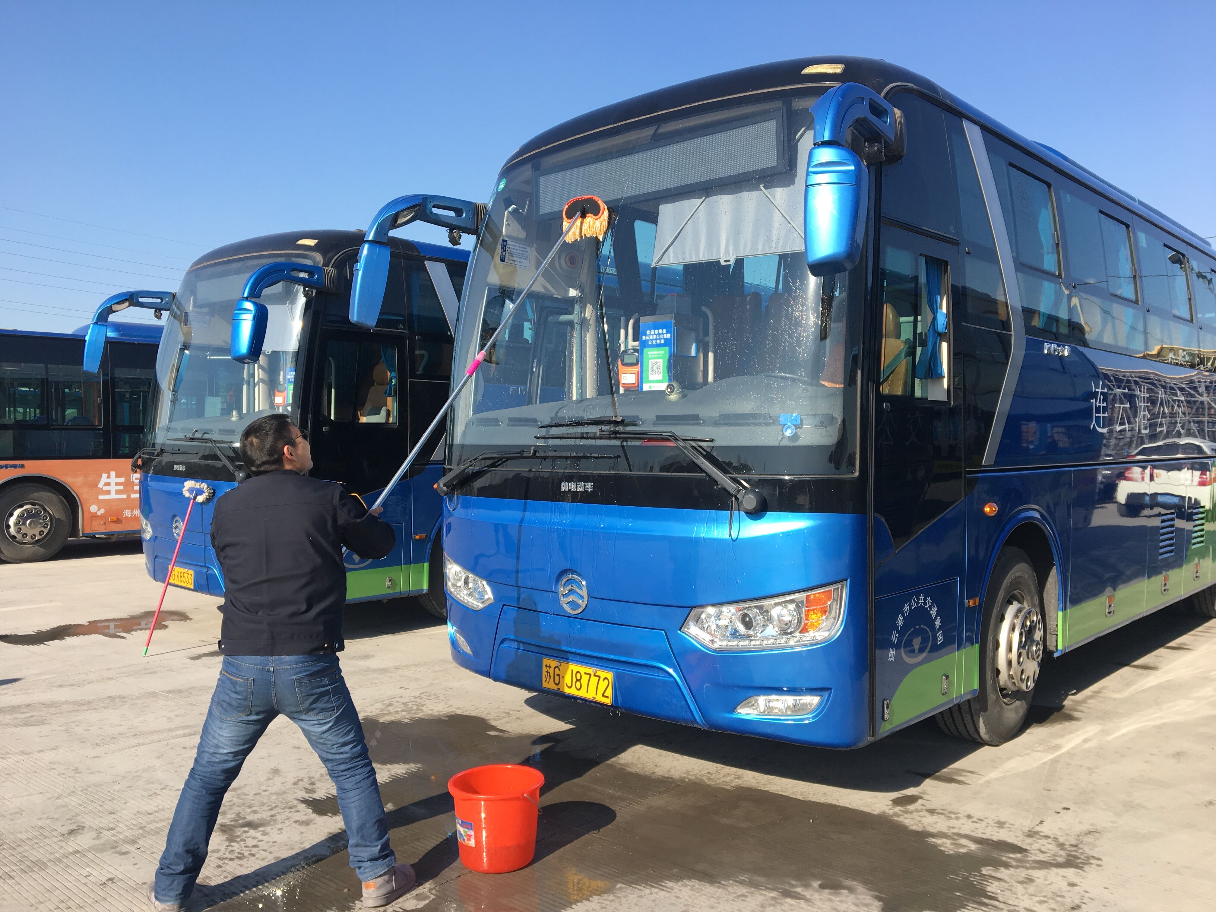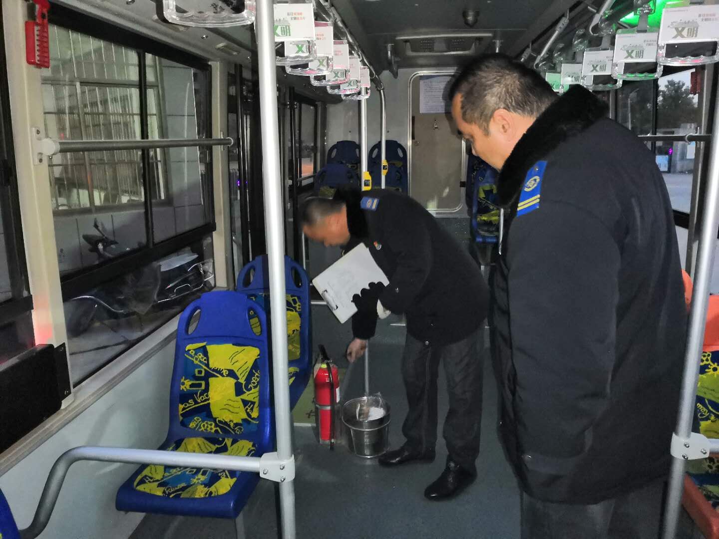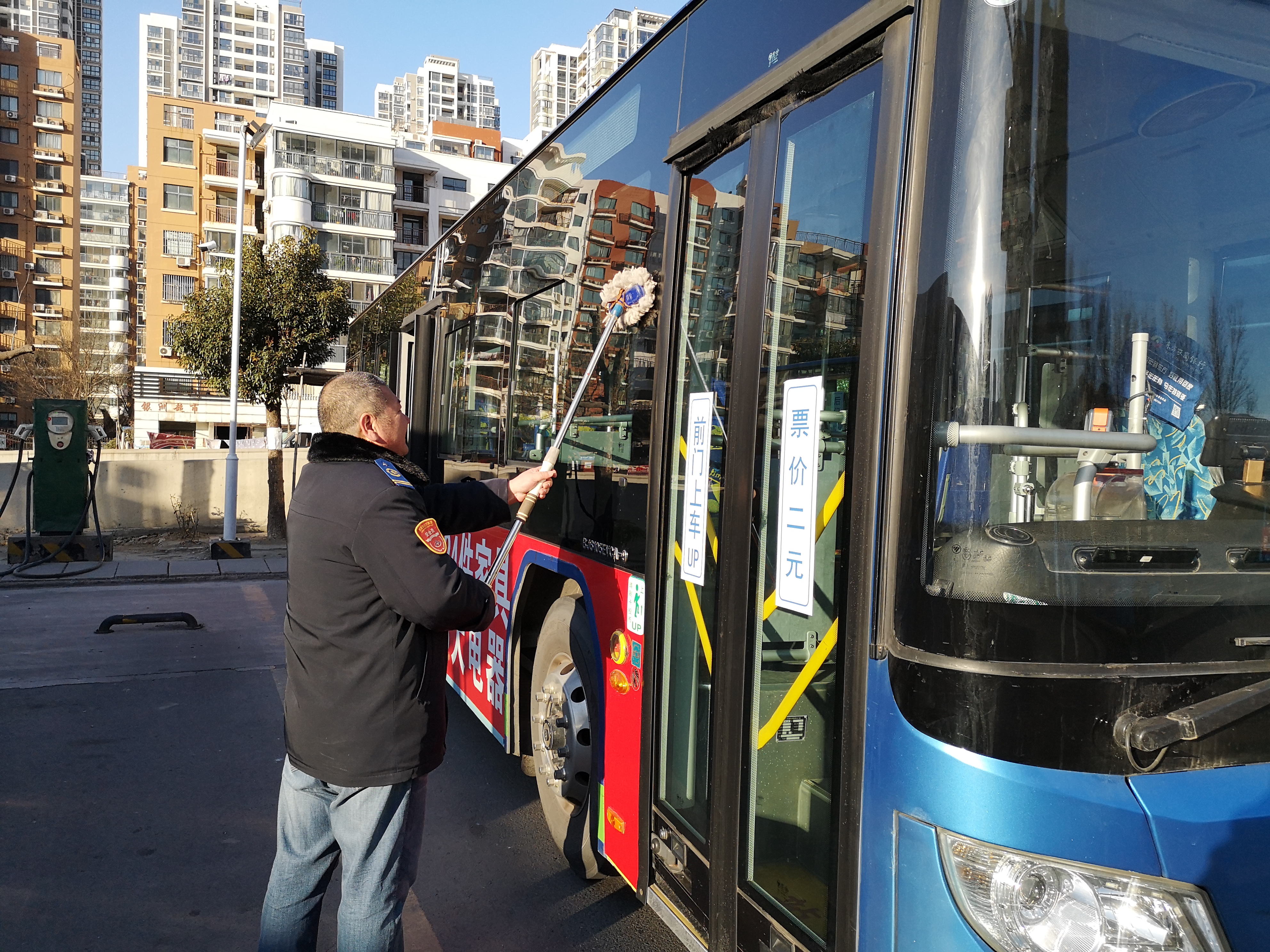新一年第一天,安机人员认真维护公交车辆,见缝插针检查车辆的每个细节