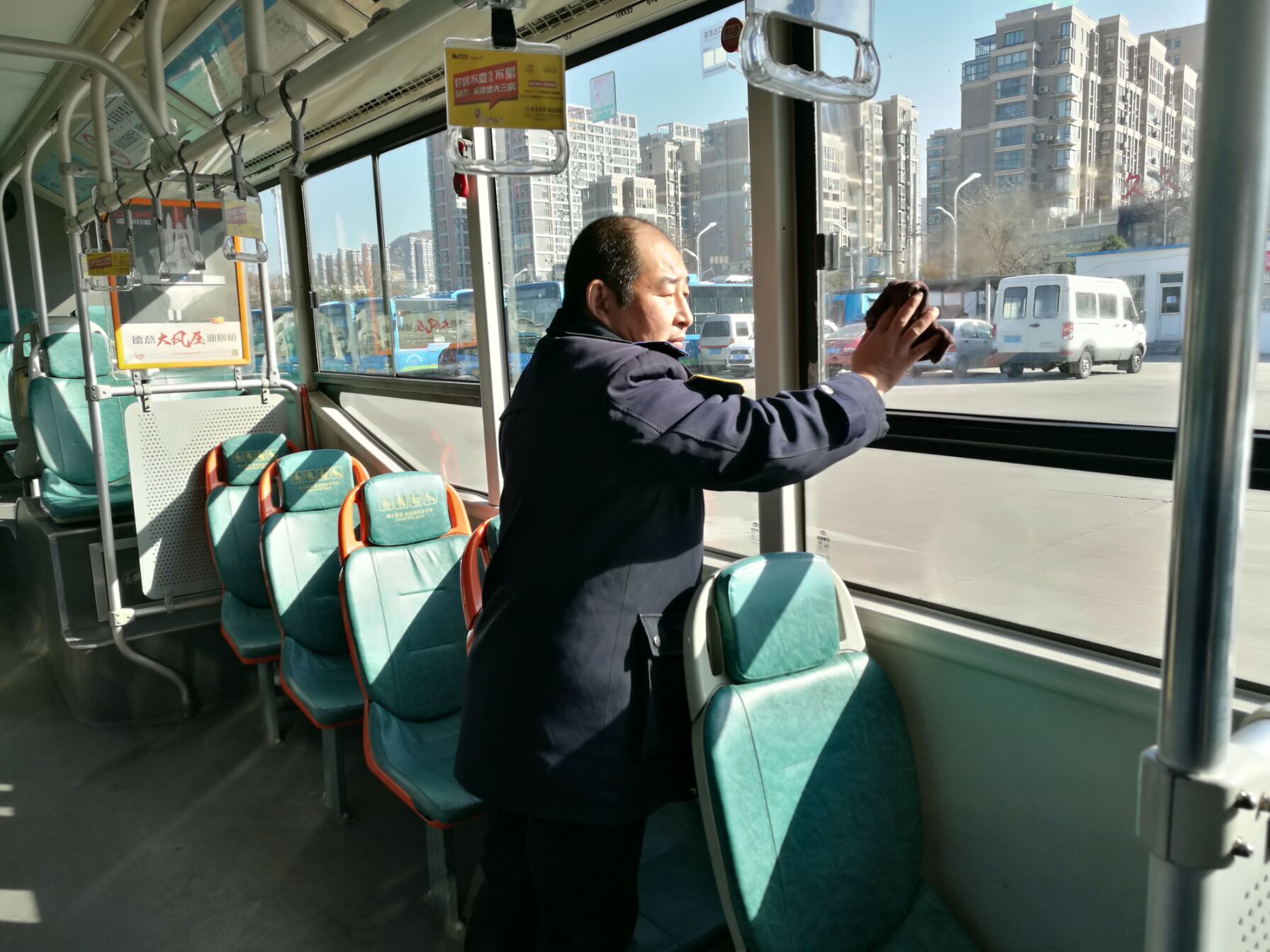 打扫车辆,让乘客拥有一个整洁舒适的乘车环境