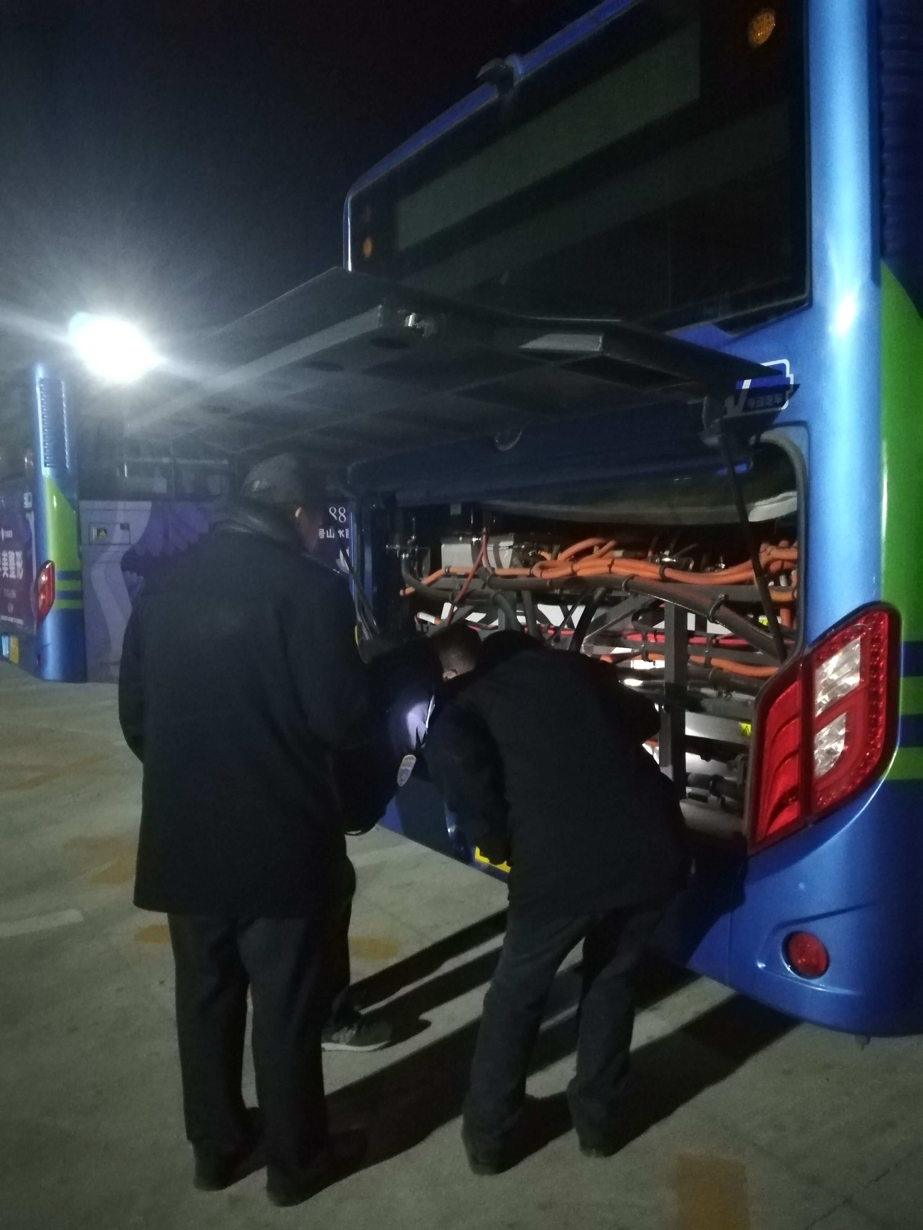 即使是寒冷的深夜,为确保车辆能够在第二天安全运营,安机人员顶着寒风一一检查,不放过每个细节