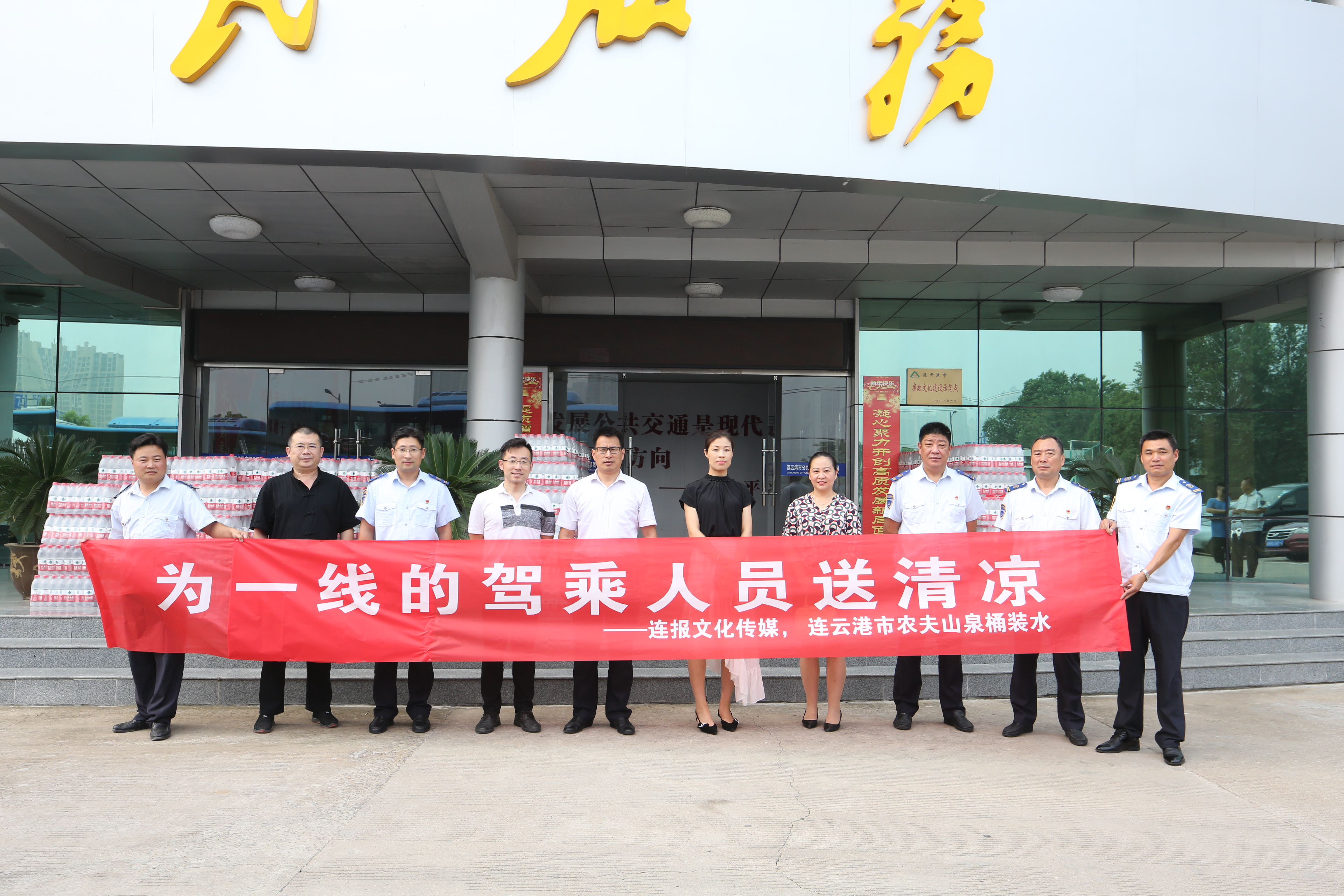 炎炎夏日,酷暑难当,港城的公交人们始终坚守在一线,为市民乘客安全出行、文明出行贡献自己的力量。7月16日上午,连报文化传媒总经理崔威携手连云港农夫山泉桶装水经理李二红一行来到公交集团,看望慰问高温酷暑仍坚守在一线的公交员工,并送来了300箱矿泉水,希望在炎炎夏日可以为他们带来丝丝清凉。公交集团党委书记、总经理周文君,副总经理罗军,副总经理、工会主席刘永善,公交集团经营发展事业部经理庄刘柱等相关人员接受慰问。
