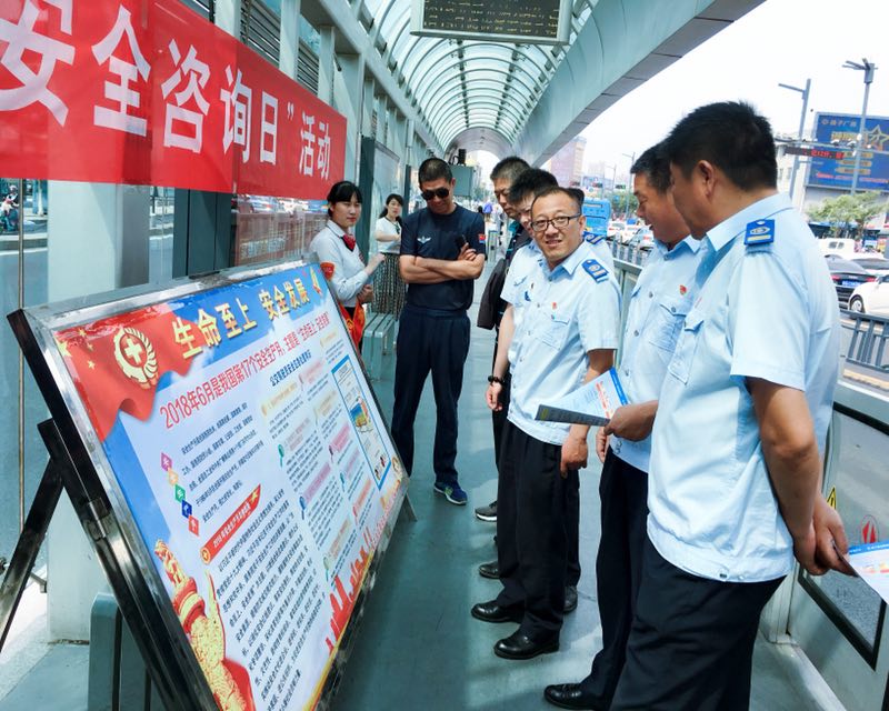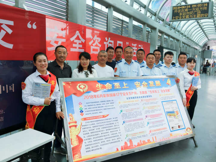 当天,公交集团权属单位分别在BRT市民广场站、苏宁广场、海州客运站、苏欣快客站、汽车总站、墟沟购物中心、海棠路口、东盛广场等城市繁华地段及人员密集的重要站点设置咨询台8处,宣传展板5块,悬挂横幅6条,发放各类安全宣传资料2000余份,各权属单位安管人员共30余人参加了活动。