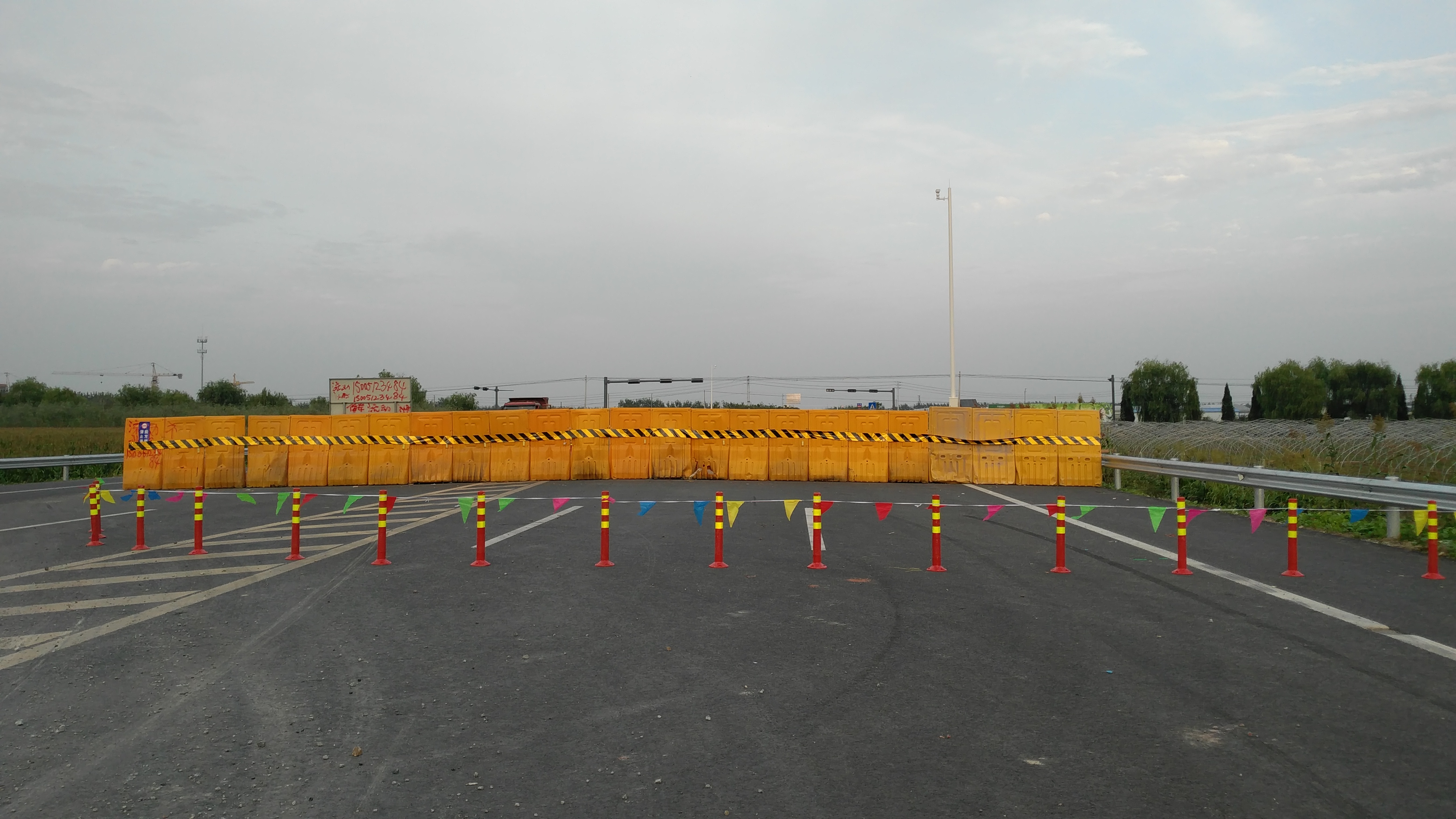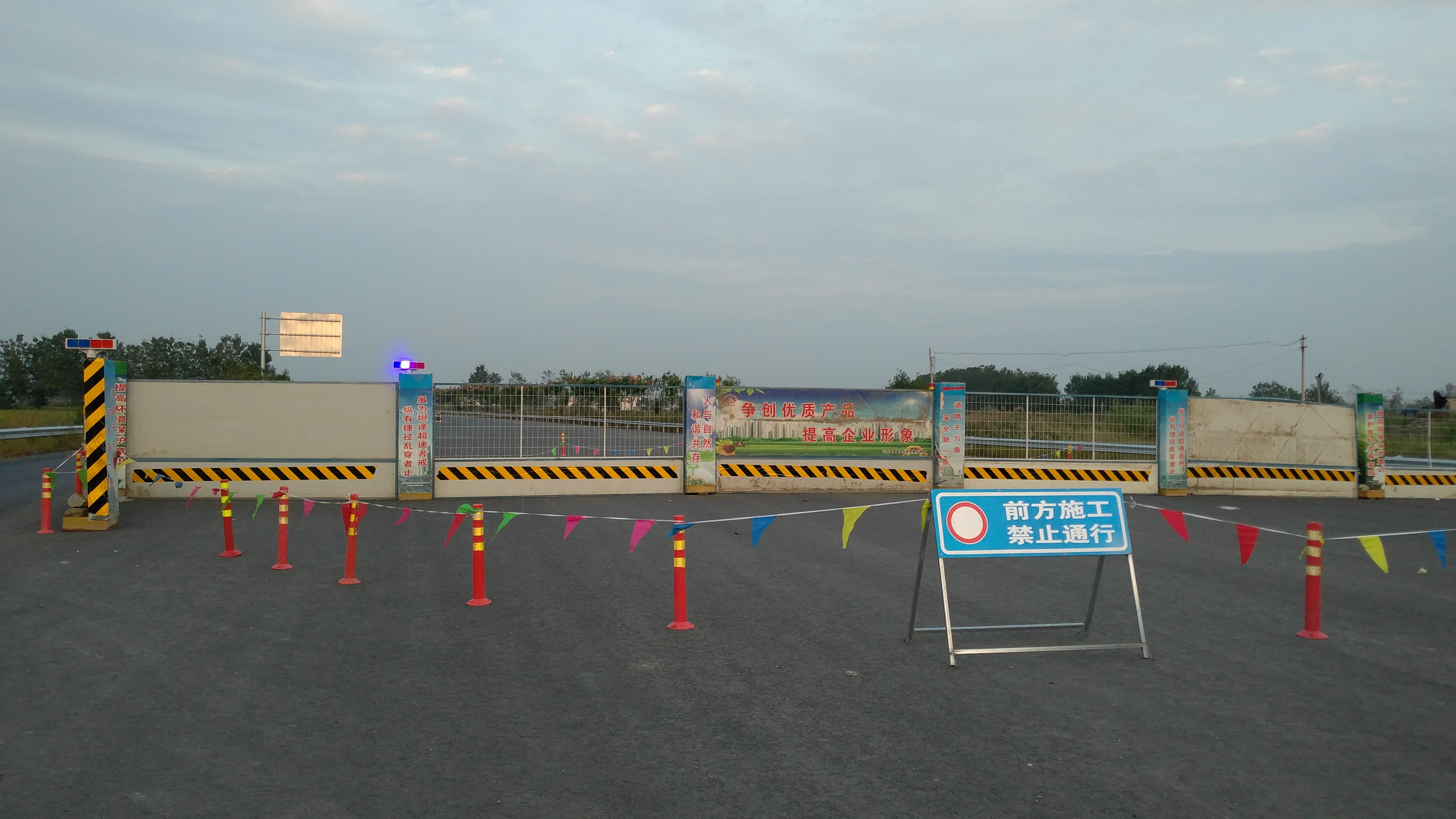 江苏海通204国道路面标工程已近尾声。该工程路线长,平交道口多,过往车流量较大,在此情况下,204路面标项目部加大了对各个平交道口的安全管理工作,在各个交叉路口用水马、隔离栏、弹力柱等安全防护设施进行围挡封闭,夜间增设反光标志及照明设备,同时派专人24小时对一些存在较大安全隐患的道口进行交通看管。