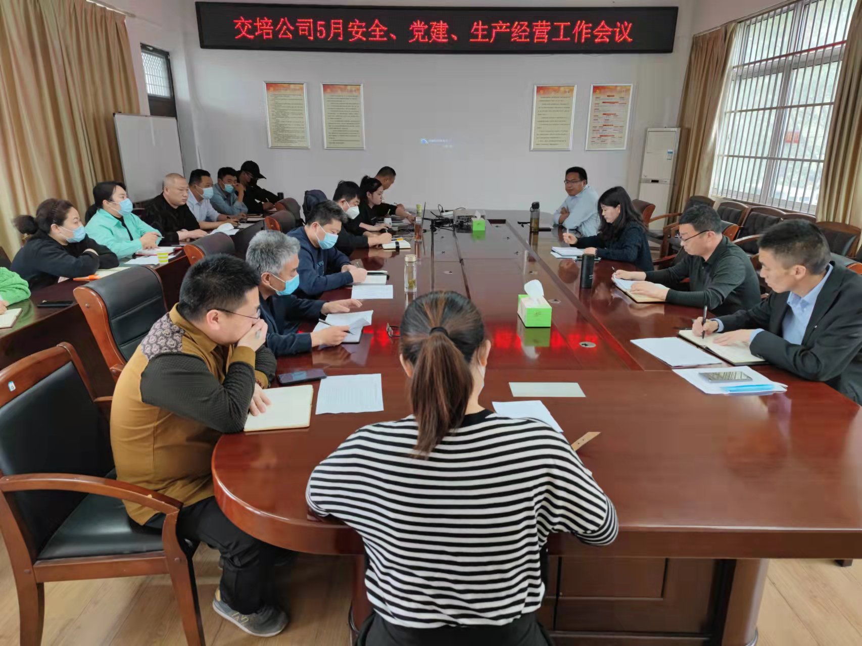 4月22日,交培公司召开5月份安全、党建、生产经营工作会议,公司领导班子出席会议,公司中层以上干部参加会议,会议由徐同龙主持。会议听取了各单位、部门4月份安全、党建、生产经营情况及5月份工作计划,分管领导结合分管工作进行了点评和要求。