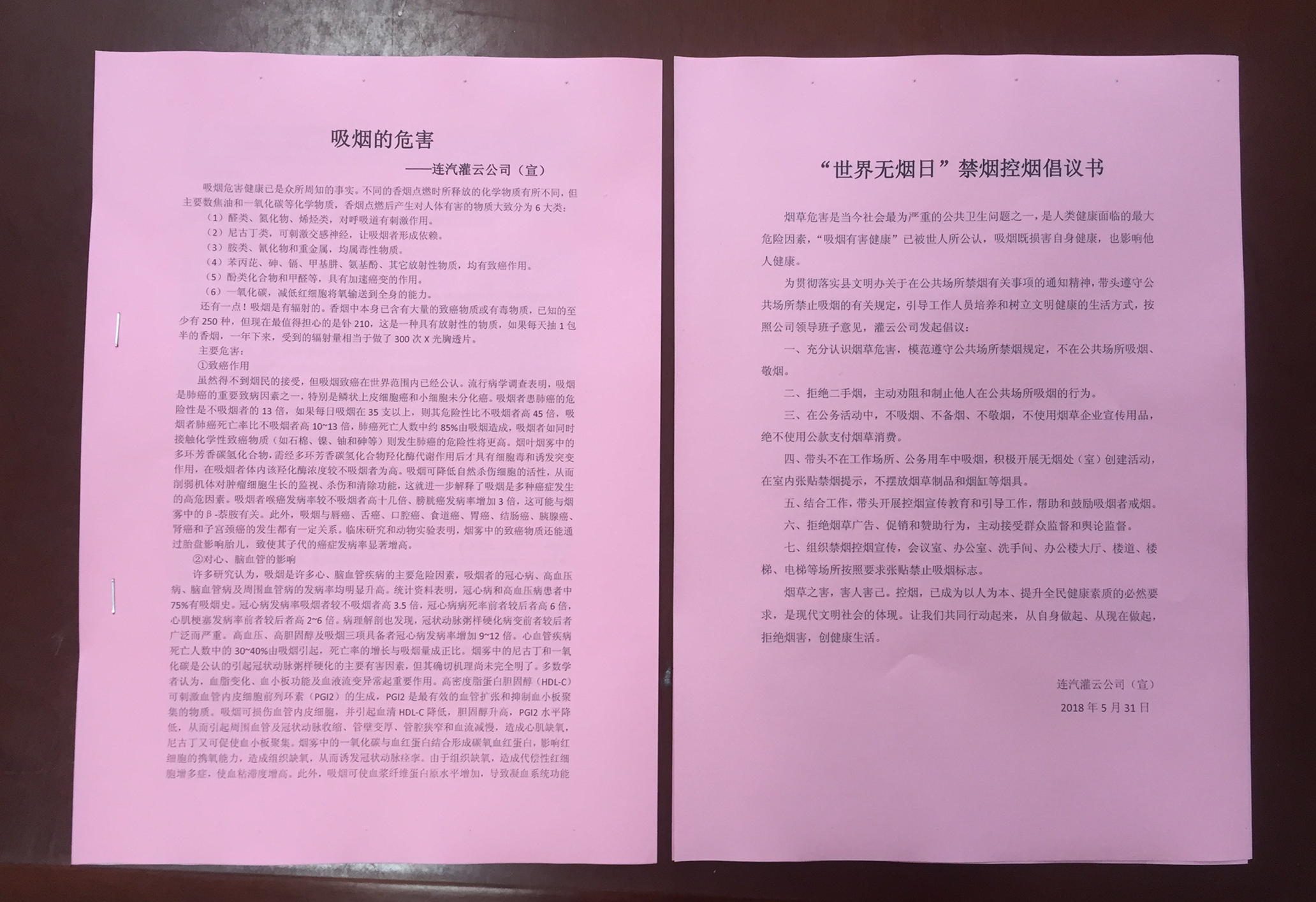 5月31日,是第31个“世界无烟日”。为响应“世界无烟日”的倡导,灌云公司组织志愿者积极开展“世界无烟日”禁烟控烟行动。
