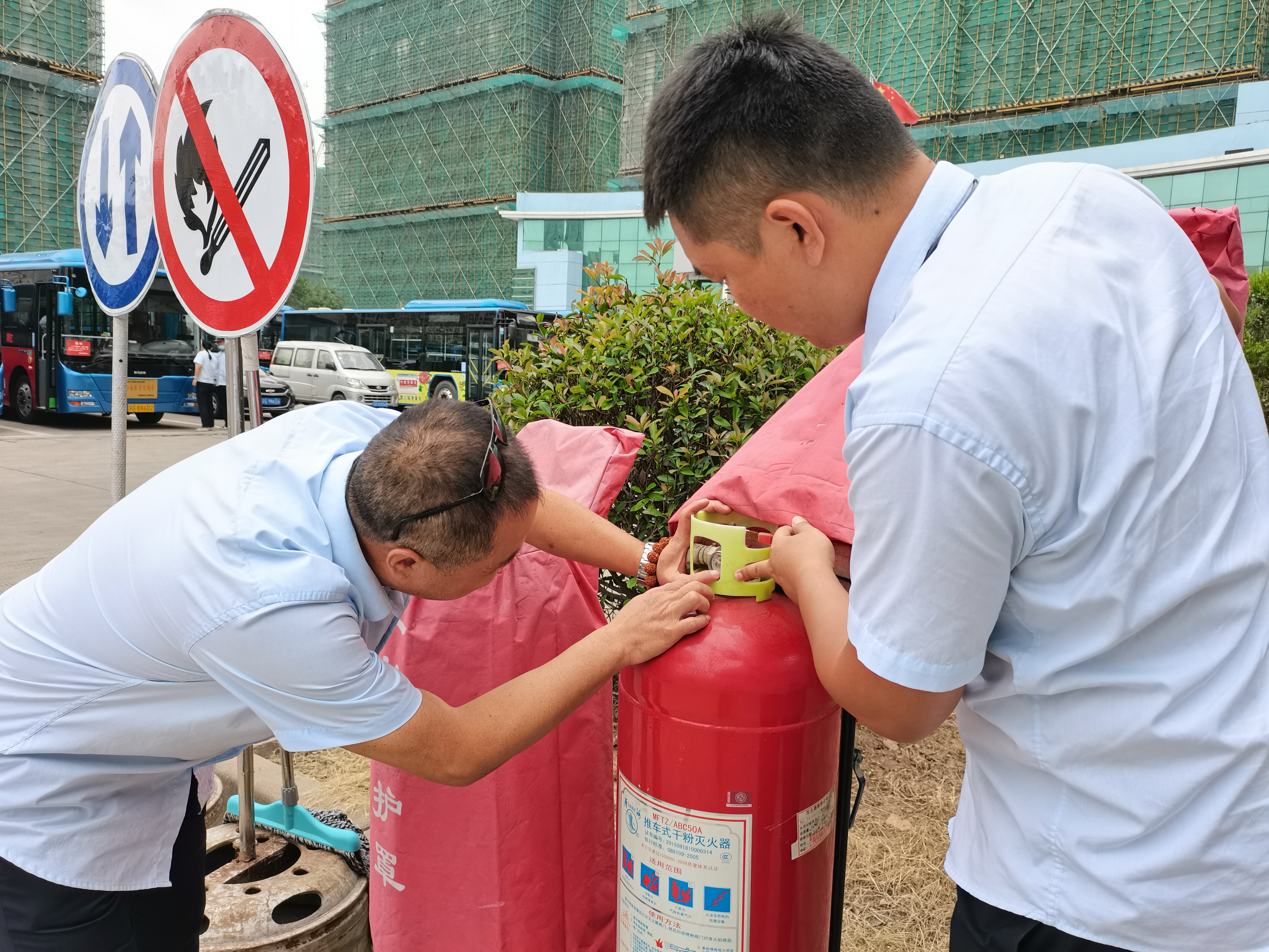 本次检查主要针对公交车辆、停车场站、办公场所的消防安全设施设备、车厢消防安全设备、车容车貌、从业人员规范操作等进行全面排查,着重针对消防器材、用电设备、安全设施、场站卫生、驾驶员安全操作、车辆钥匙管理、应急物质等方面开展,并现场随机抽取车辆,上车查看灭火器有无压力小、有无锈蚀损坏等情况,确保消防器材及应急物质齐全有效。