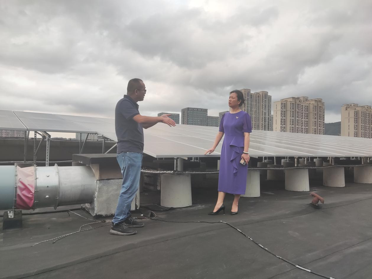 在党校光伏项目现场,蒋月琴一行详细了解项目自带电运行以来的运行状况,并细致检查了安全防范措施和应急预案的落实情况。检查组重点对光伏组件、逆变器、并网柜等关键设备进行了隐患排查,确保无遮挡物、破损等安全隐患,并就项目的日常巡检、维修及光伏清洗等工作进行了周密部署,以保障光伏项目的安全稳定运行。