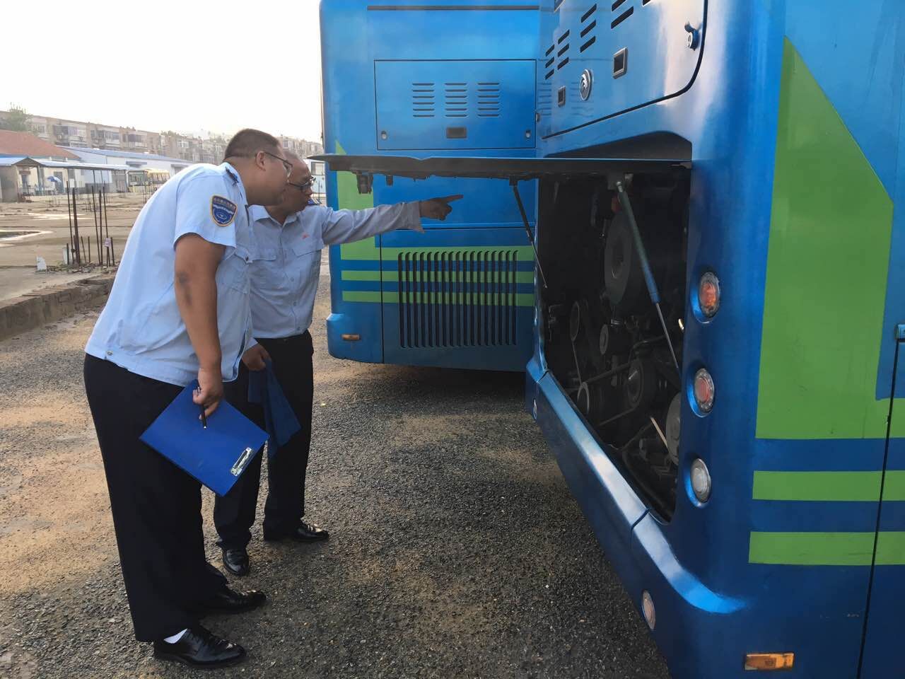 检查组对车辆、办公场所、停车场、发车点进行全面的安全生产大检查,检查的项目包括发动机、制动、转向、消防器材等车辆安全部件,驾驶员的酒精测试、驾驶证、从业资格证的审查、消防通道的预留等方面。
