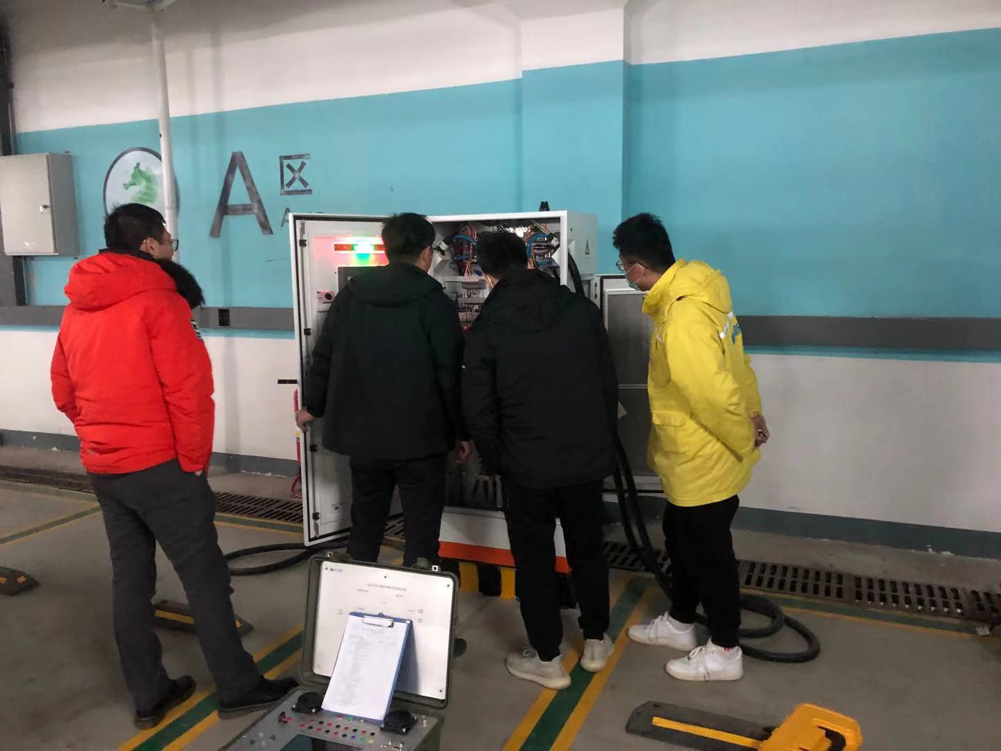验收组对明茂公司20个充电站69台充电桩进行验收,分别勘察了充电桩验收资料、充电桩数量、型号、铭牌号,并围绕现场充电桩的绝缘电阻、接地有效性、开门保护与锁止功能、控制导引与充电时序等方面进行检测,最终明茂公司各场站所有充电桩均顺利通过检测。