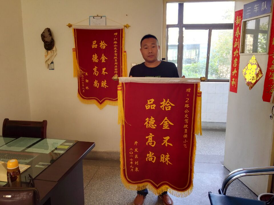 据刘先生讲述,这三万多元是借来给父亲做心脏搭桥手术的。当日,他提着装有借来三万余元钱的包匆忙从第一人民医院搭乘公交2路车回猴嘴家中取东西,下车时把包落在了车上。事后发现钱丢了,心里很着急,但在照顾生病的父亲,所以没有留意手机来电。早上,他抱着试试看的心态来到了公交新浦公司车队看看能不能找回包,当得知包失而复得,父亲的救命钱找到了,他的心里特别激动,当场拿出部分现金要对驾驶员表示感谢,侯师傅毅然拒绝了刘先生的好意,并表示:“这是我们公交人应尽的义务,希望您父亲可以早日康复。”刘先生频频点头。为表示衷心感谢和对侯师傅拾金不昧精神的赞赏,刘先生特意制作了锦旗送给侯小飞师傅。