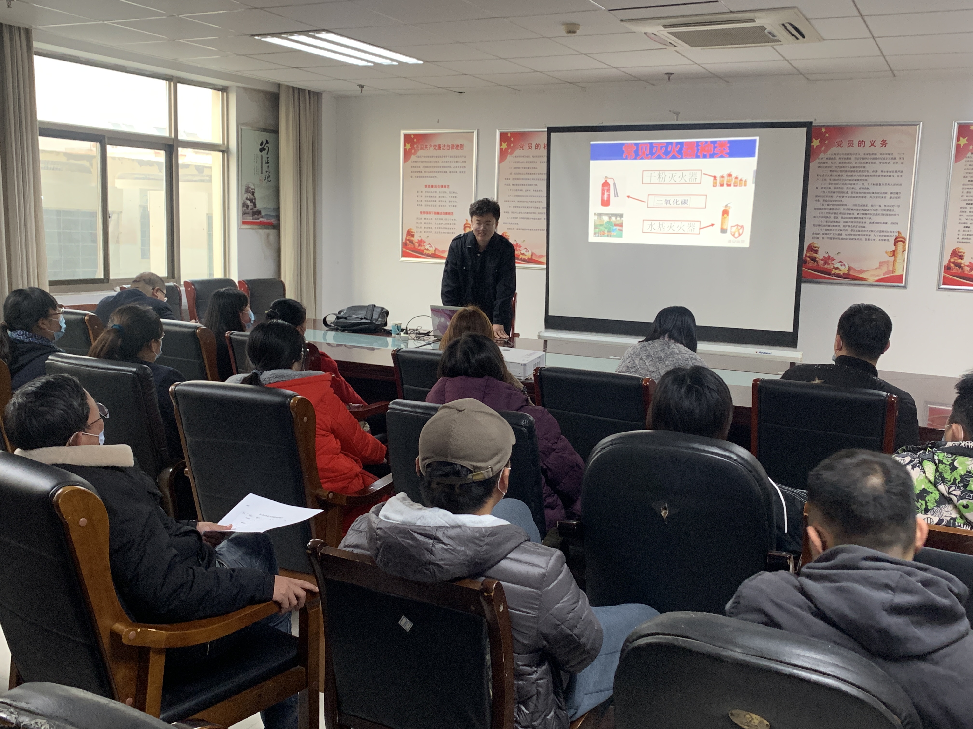 在培训课上,王祥祥结合消防安全实际情况,从当前消防安全工作形势引发事故的危害以及我们身边的典型案例入手,穿插了近期发生的火灾视频作为案例,生动地阐述了普及安全知识、提升消防意识、正确使用消防器材的重要性,结合实际案例对火灾发生的原因进行了透彻分析,对火灾发生时如何报警、如何正确使用消防逃生器材、如何现场逃生及注意事项等进行了具体讲解。培训人员深受教育并做了详细笔记。