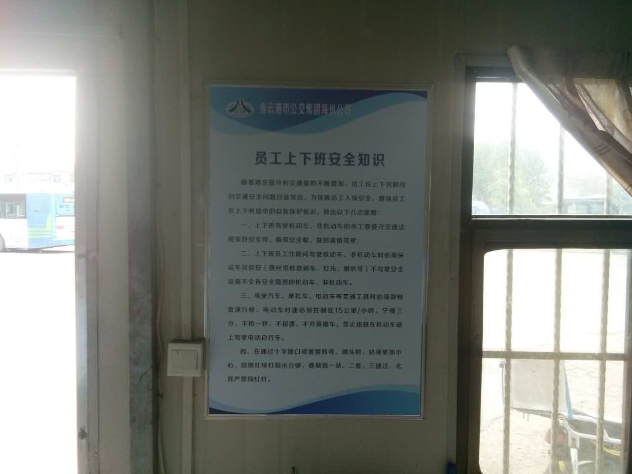 为加强安全文化建设,增强职工的安全意识,进一步提高职工上下班路上的安全意识,近日,公交海州公司通过在车队内张贴安全标语等多种宣传方式打造特色安全文化,全面助力公司开展安全生产工作。