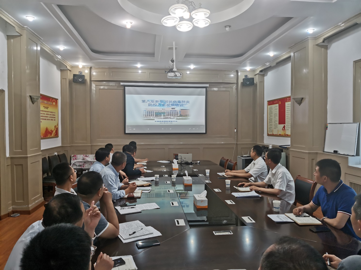 本次培训以学习贯彻《新型冠状病毒肺炎防控方案(第八版)》为主,采取观看视频结合课件辅助的形式进行。《防控方案》主要从总体要求、病原学和流行病学特征、公共措施、疫情监测、疫情处置、实验室检测、境外输入疫情防控、加强重点环节防控、组织保障九个方面以及12个相关工作文件讲述了当前疫情防控工作的重要性和具体防控措施。