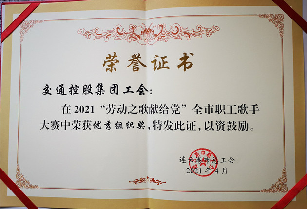 近日,由市总工会、广播电台主办,连云港综合广播、市音乐甲协会承办的“劳动之歌献给党”连云港市职工歌手大赛圆满落幕。集团工会广泛宣传、积极发动,共组织15名职工参加大赛。经海选、预赛、决赛层层选拔,集团权属汽服公司王德军、汽车公司周瑾、舒志坚3名职工分别荣获业余组金奖、银奖和铜奖,集团工会获优秀组织奖。