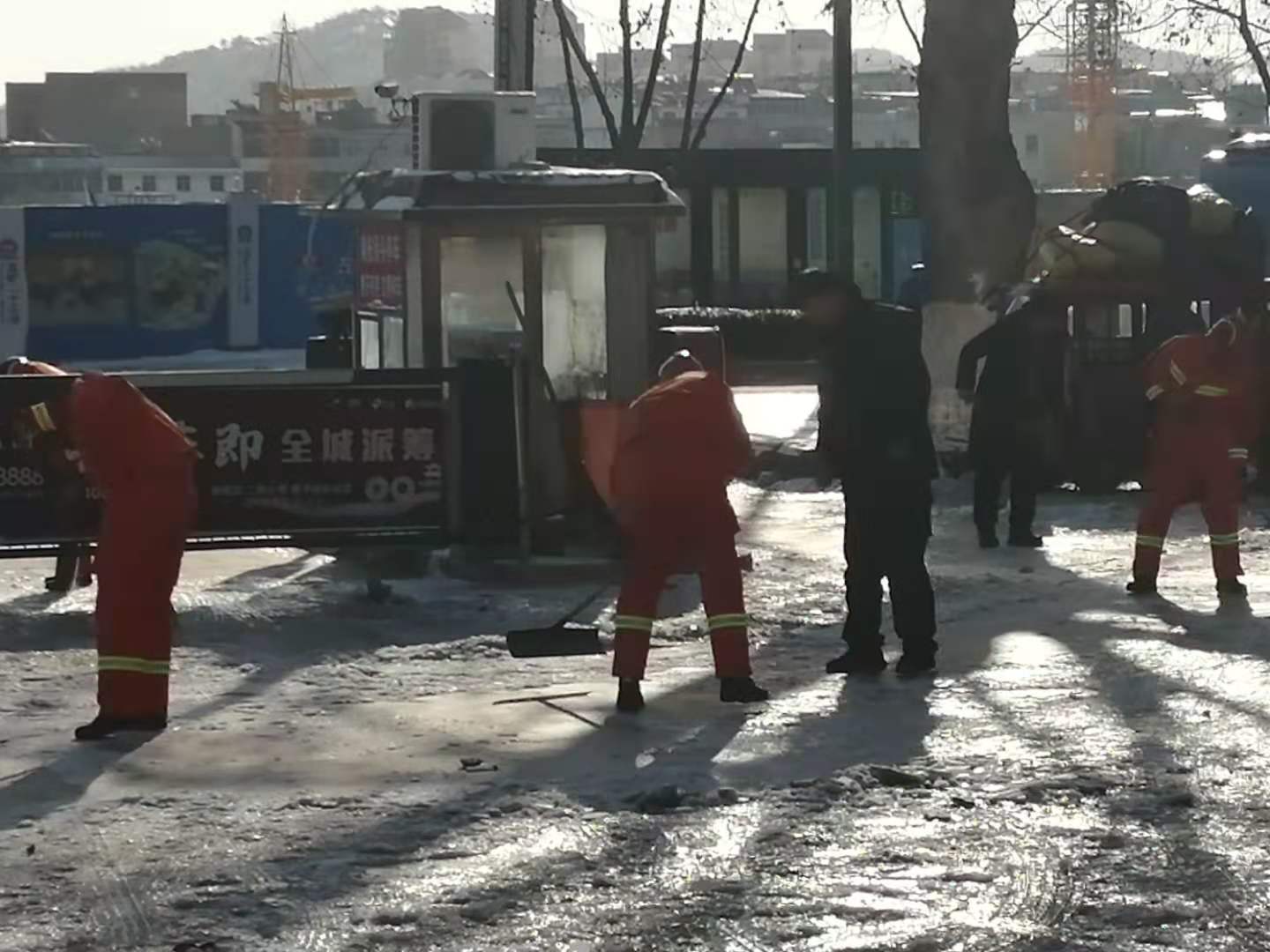 12月29日,我市迎来大范围降雪。由于气温较低,造成道路结冰湿滑。为确保群众出行安全,12月30日早,海州应急救援大队出动全体党团员到海州客运站与长途公司干部职工共建开展扫雪除冰志愿服务。