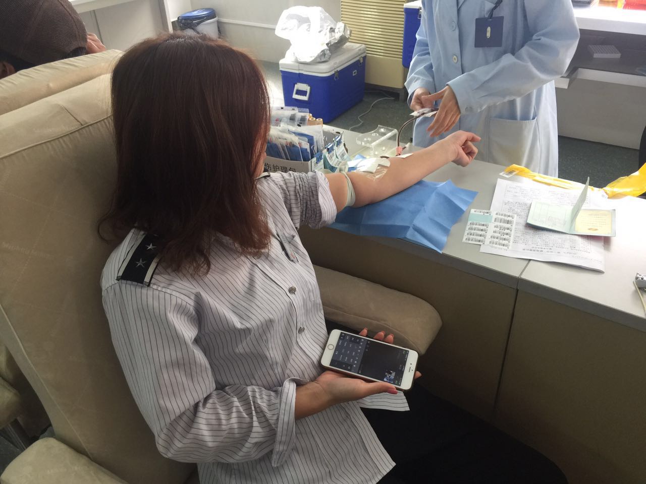 天空下着小雨,却挡不住大家奉献爱心的热情。在中心血站献血现场,员工们积极配合医务人员,认真有序地进行登记、体检、化验、采血……随着一股股鲜红的血液注满一个个血袋,温情在悄然输送,爱心也在无声中传递。