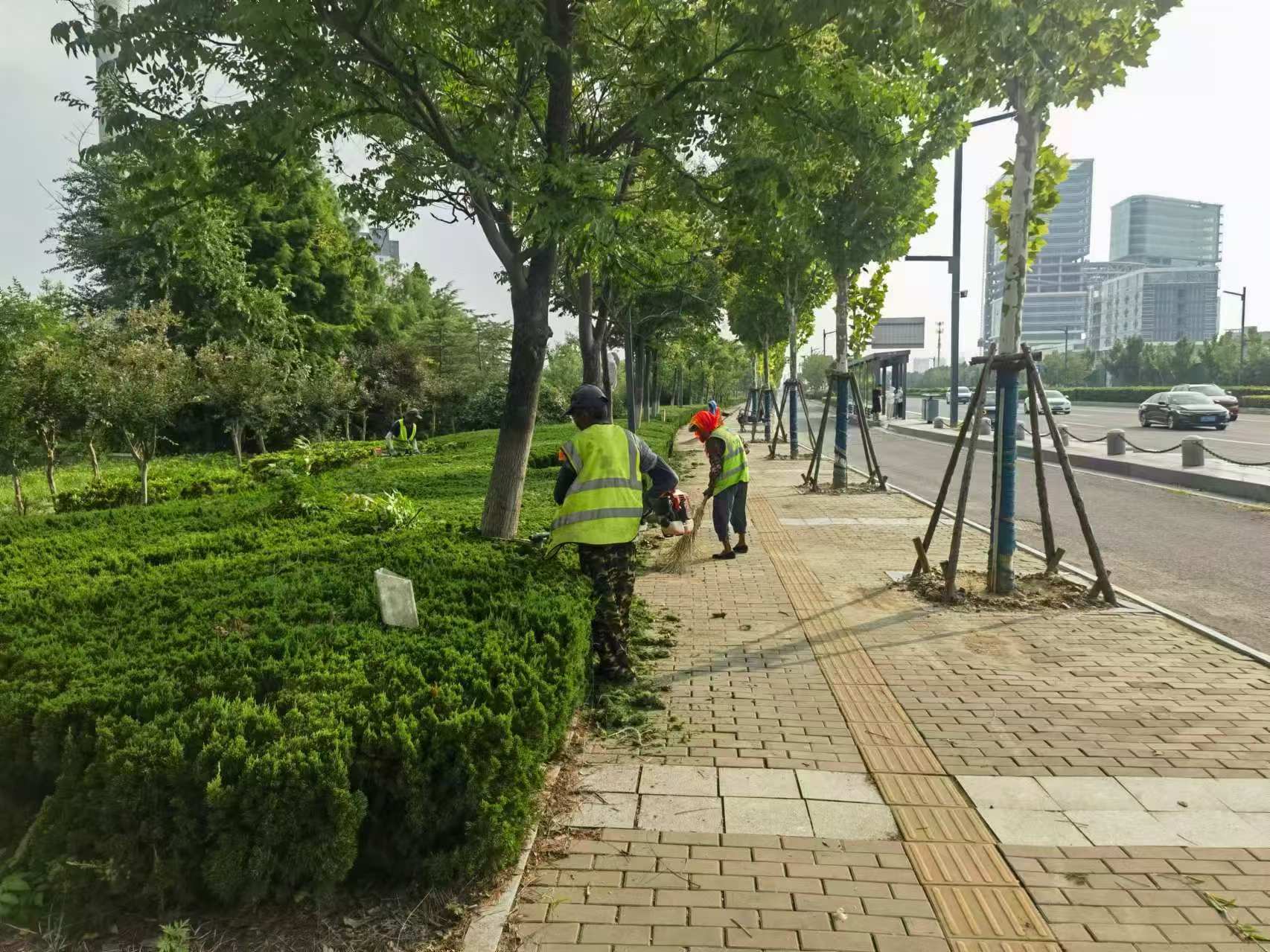服务保障期间,加强保洁力度,及时处置路面污染,对道路两侧绿化带、中分带、边分带内的草坪等进行精修,突显公路景观效果,并提前进行病虫害防治,加强绿化浇水,确保苗木水分充足,保障港城大道等重点路段沿线绿化整洁、色彩亮丽,充满生机。