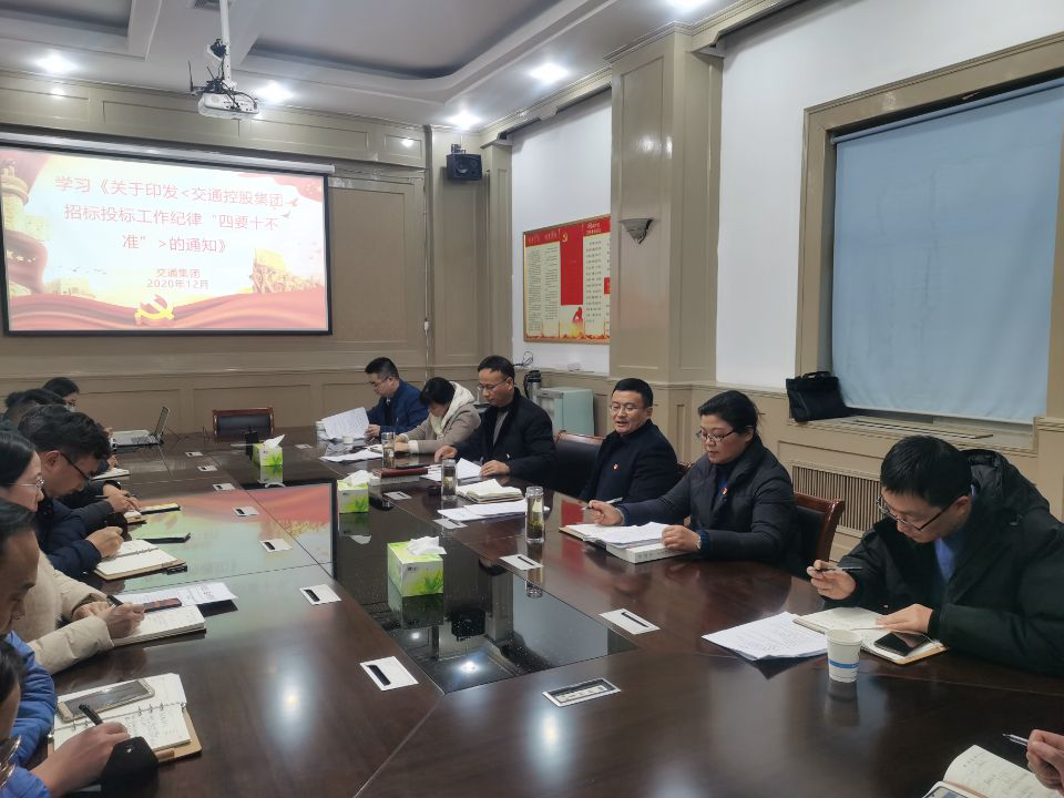 近日,交通集团召开党风廉政建设专题会议传达学习《交通控股集团招标投标工作纪律“四要十不准”》文件精神,交通集团党支部书记孙克勤主持会议,集团领导班子成员和中层干部参加会议。